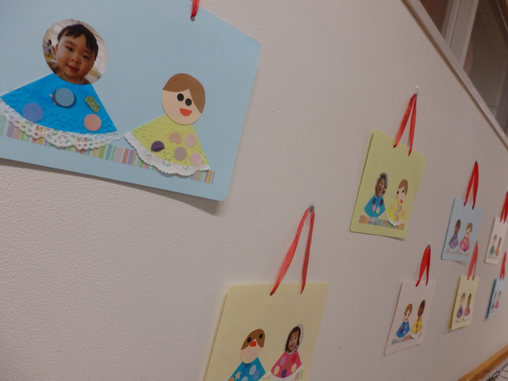 各クラス前の廊下や玄関には、子どもたちが作った個性的でかわいい作品たちが飾ってありました。みんなが健康に暮らせますように……☆