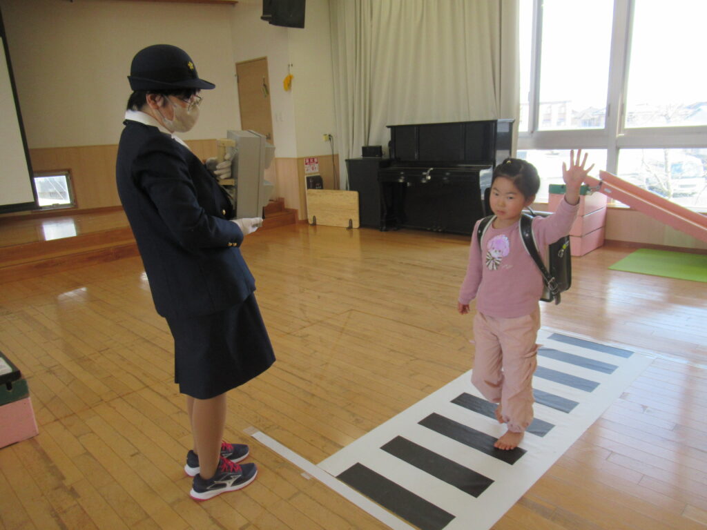 ニュース&トピックス ナカノスイミング保育園 5歳児ゆり組🌼交通安全教室🎒【ナカノスイミング保育園】 掲載日2026.3.5 カテゴリー保育園 交通指導員さんが来てくれてゆりさんに交通安全教室を開いてくれました。 実際にランドセルを背負って歩いてみます 就学に向けて、おうちの方と通学路の確認を一緒にしてみて下さいね。