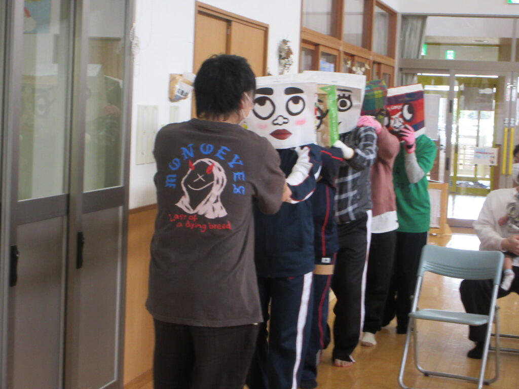 魔法で顔にお面がついてしまった先生たちが登場~😆みんなで何先生が隠れているのか考えてみました♪