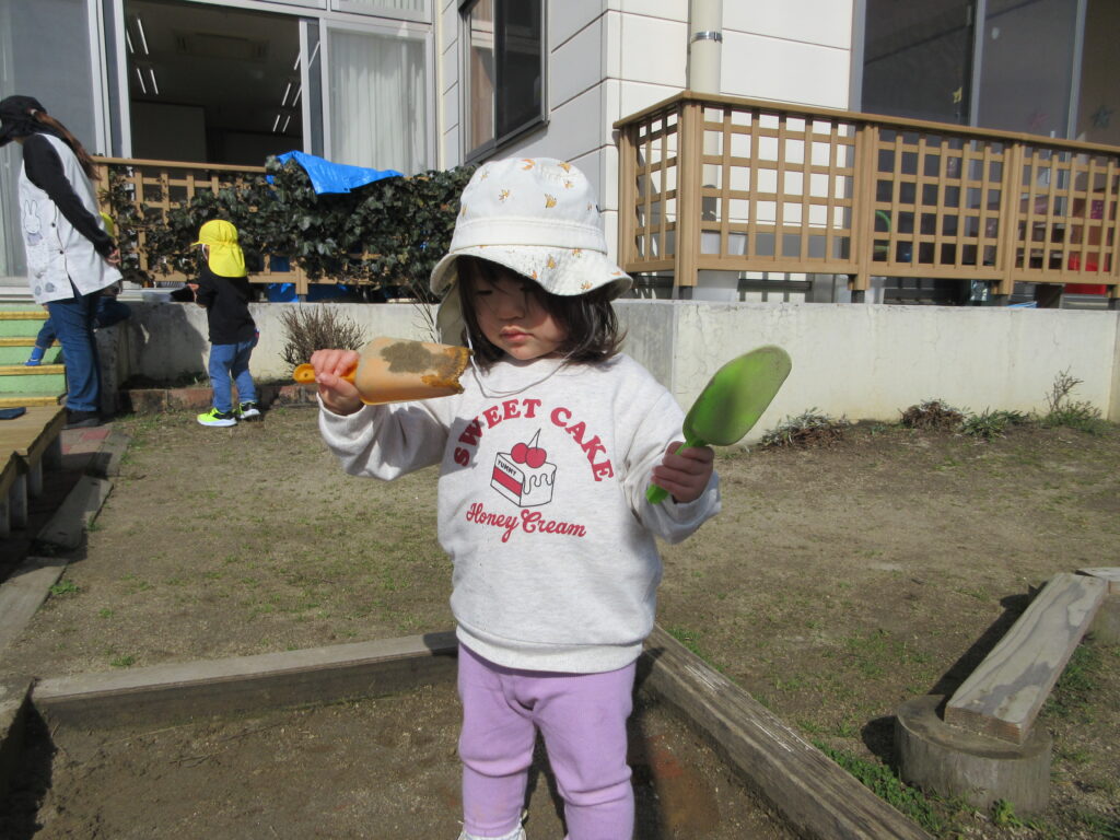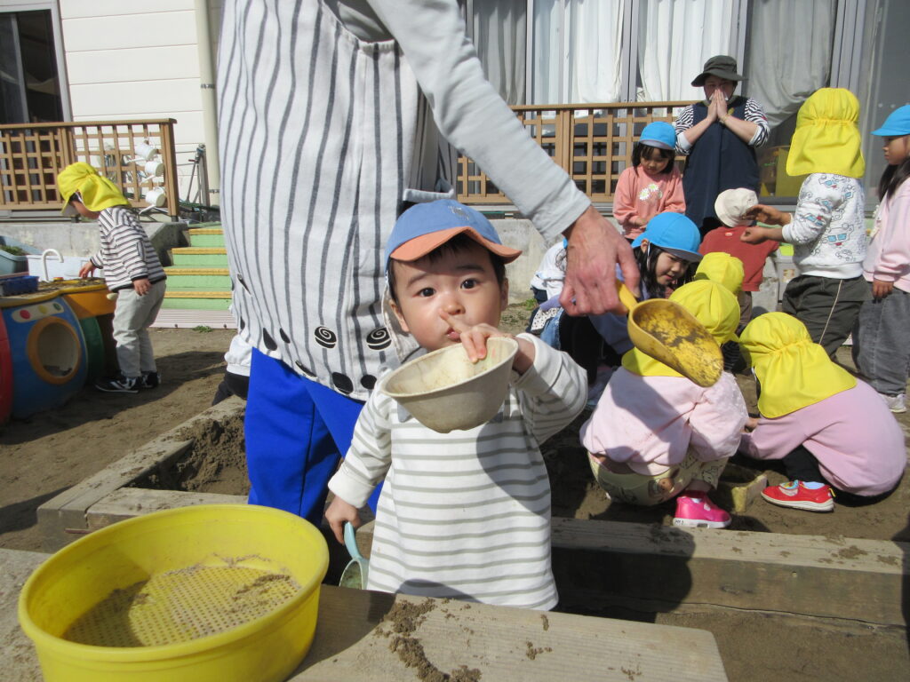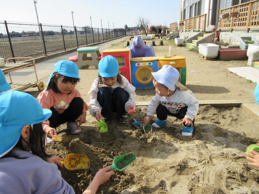 気持ちがいい外でたっぷり走ったり、砂を掘ったりと思い思いの好きな遊びを楽しんでいた子どもたちでしたよ。