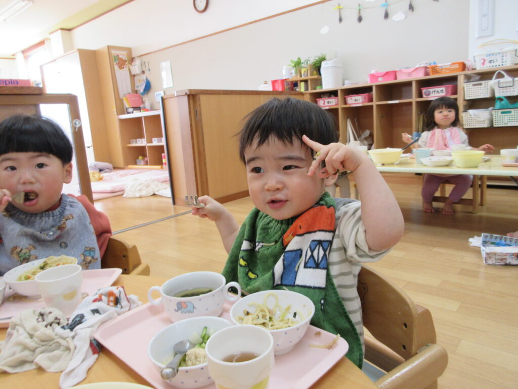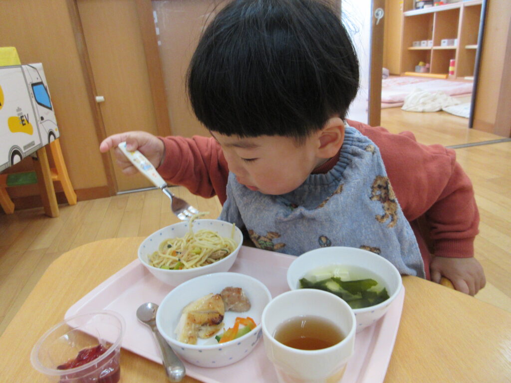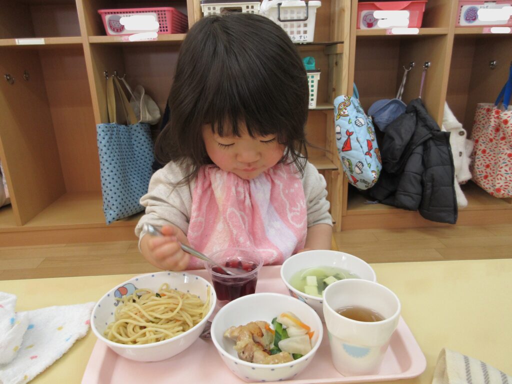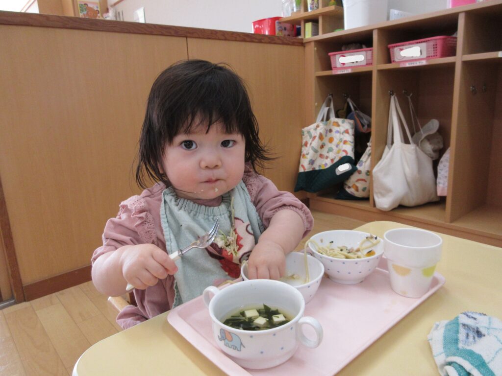 今日は誕生会メニューだったので、ツナスパゲッティが大人気でした!