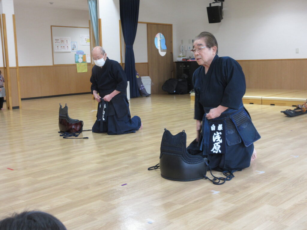 面や防具をつけるところも見せてもらいました。