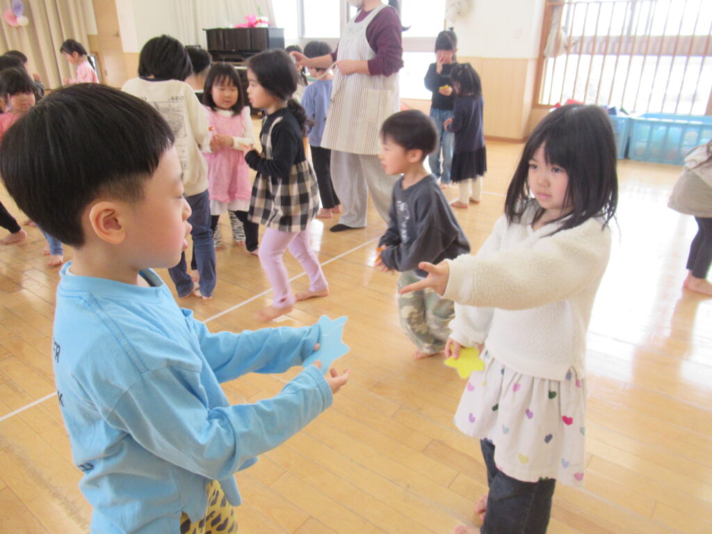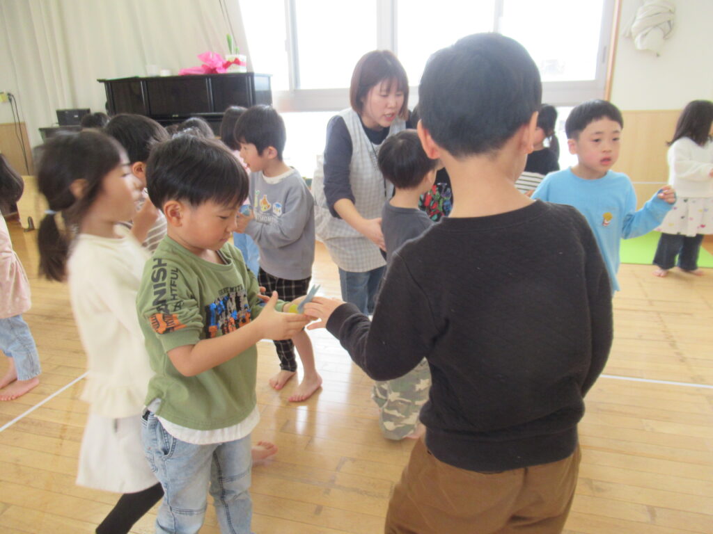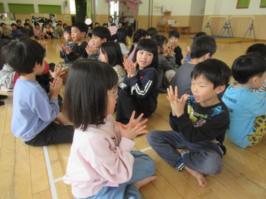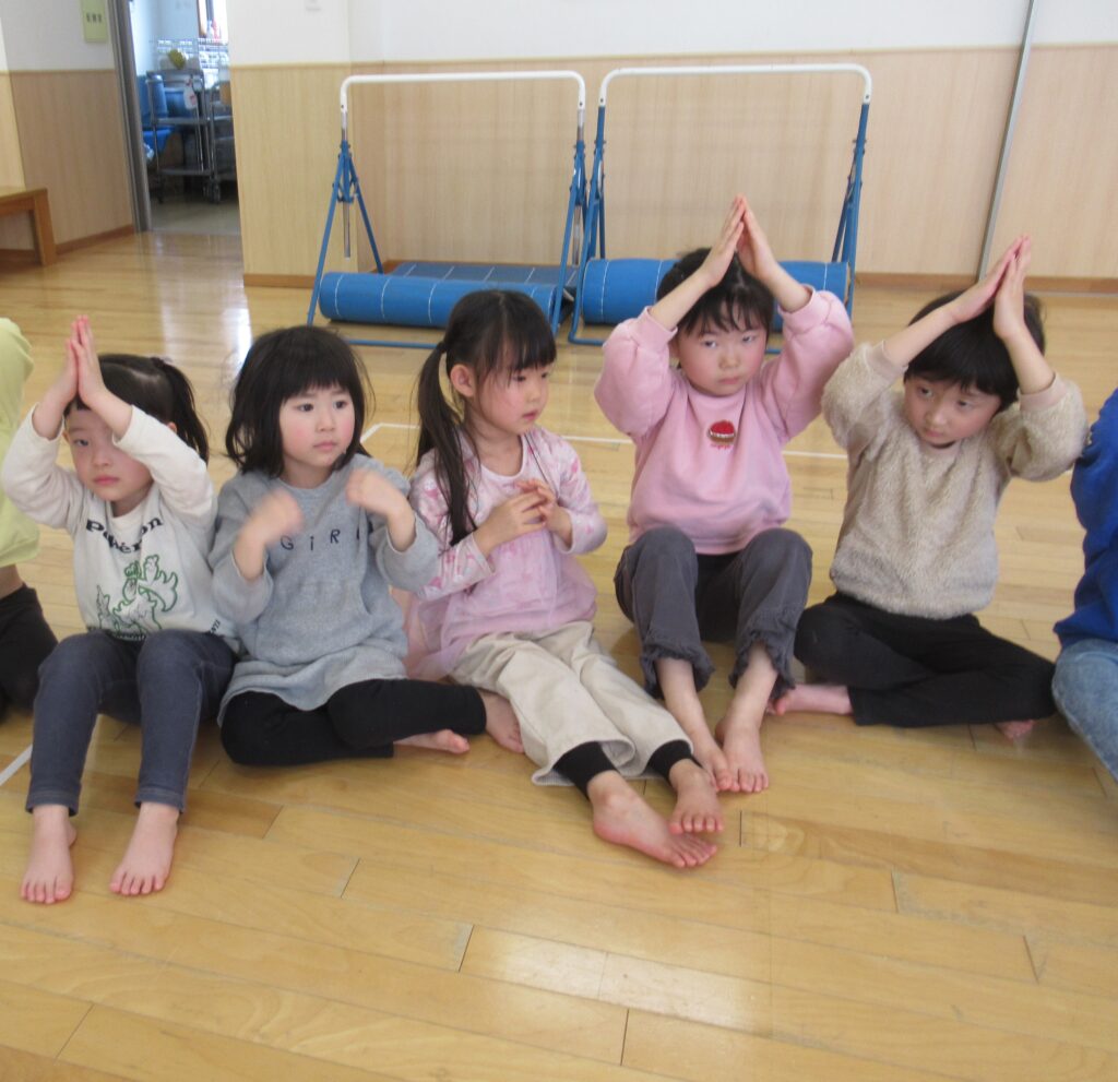 すみれ すずらん組さんと『お寺の和尚さん』の手遊びと『大根抜き』
