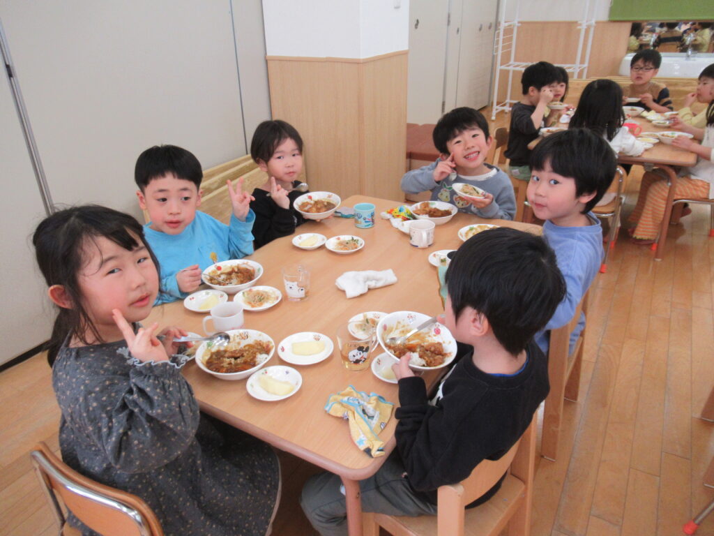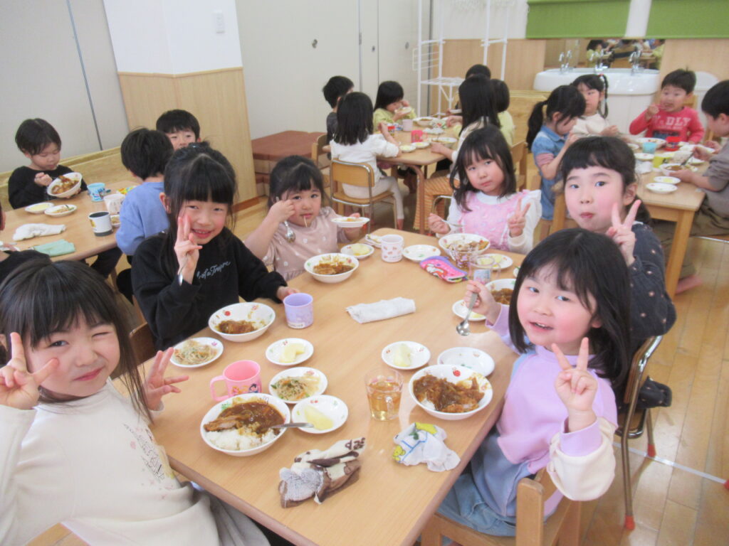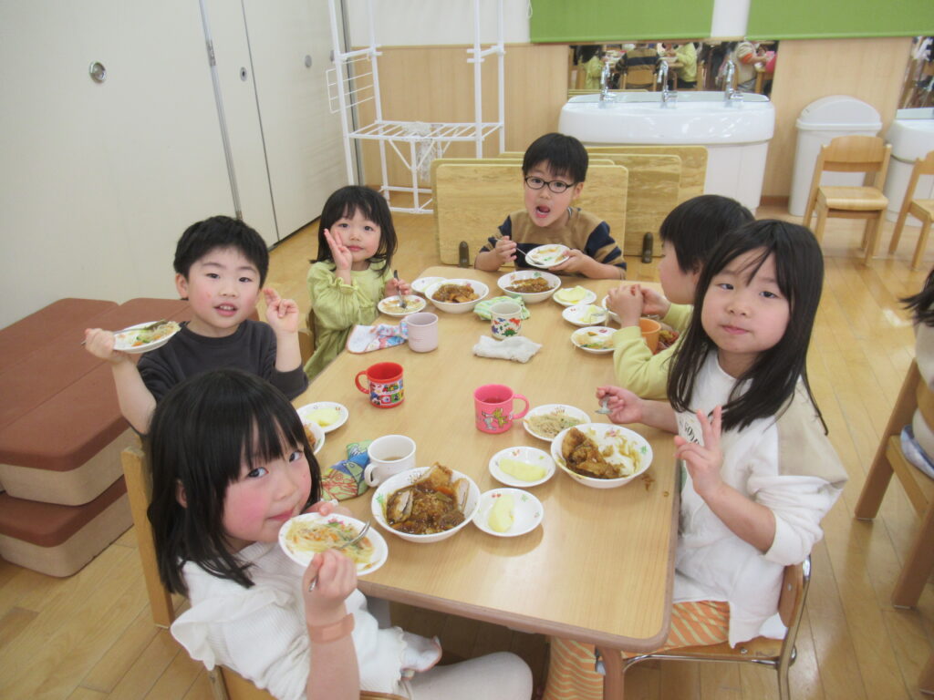 今日のメニューはゆり組さんが考えました。カツカレーとってもおいしかったね!
