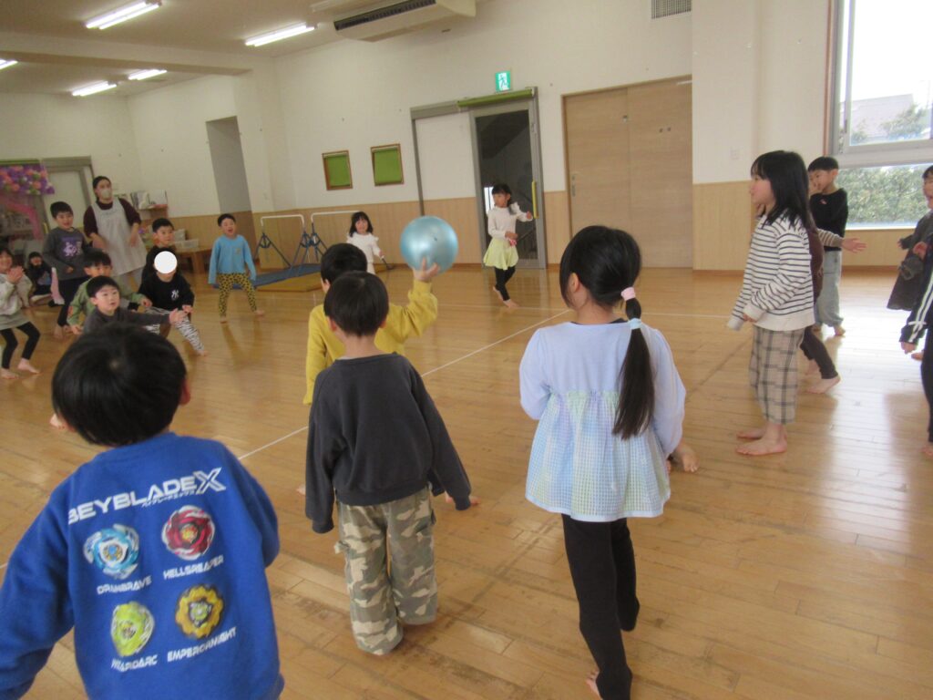 さくら組さんとの混合チームでドッチボール大会