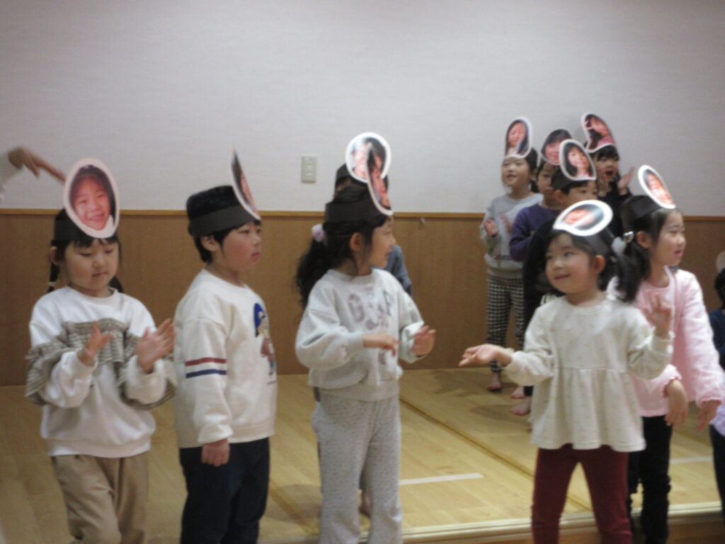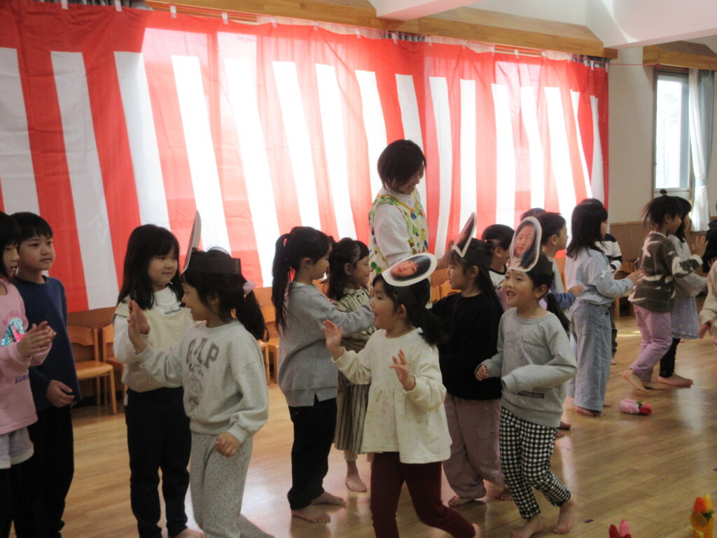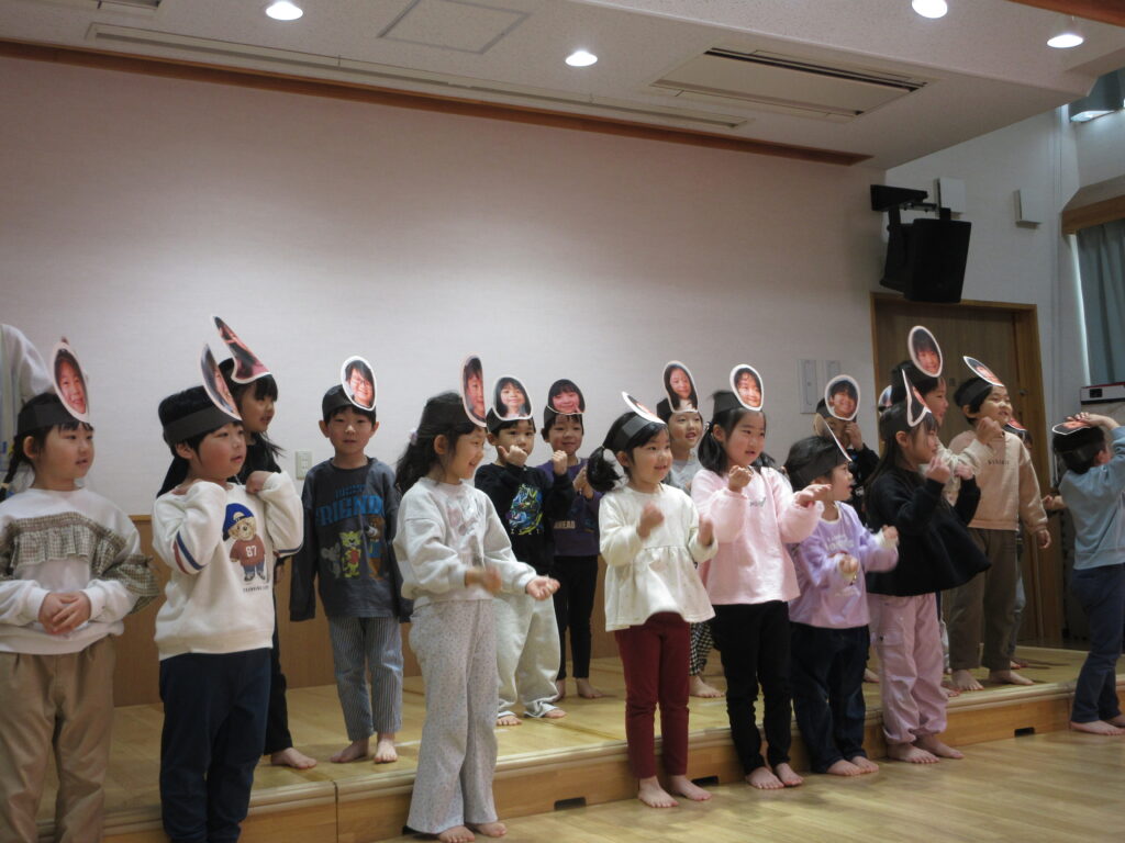 たいようさんのお面をつけて登場すると、たいようぐみさんは大喜びでした。