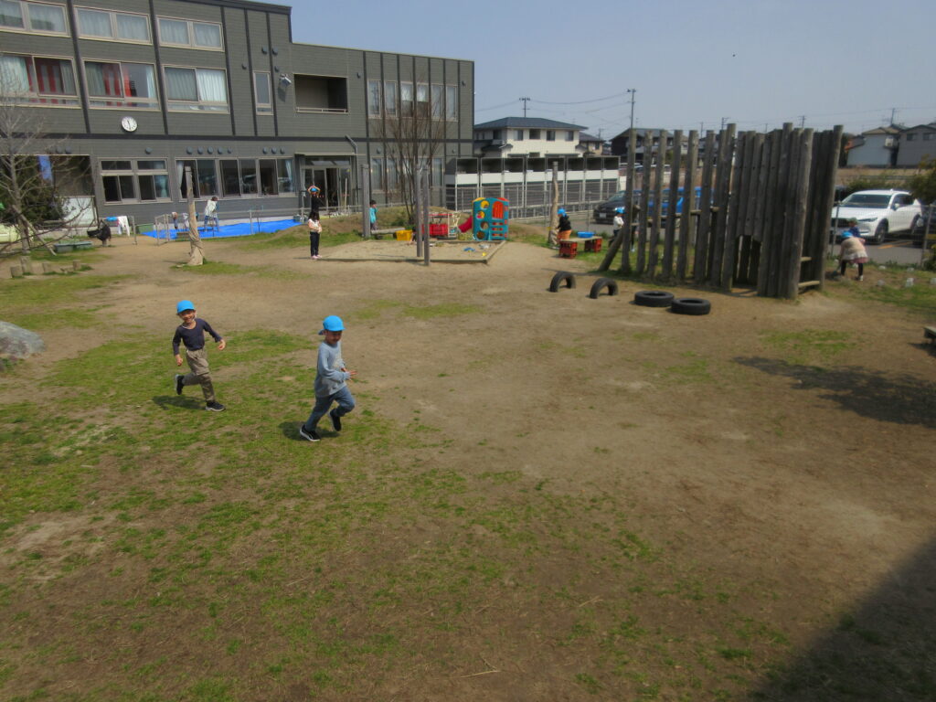 園庭で自由に、めいっぱい遊びましたよ!もう少しでこの園庭ともバイバイなんだね…としみじみする子。いっぱい遊ばなきゃ!!と張り切る子。みんな思い思いに楽しみました😁明日が最終日。さみしい気持ちもあるけれど、明日も思いっきり楽しもうね🌞✌️