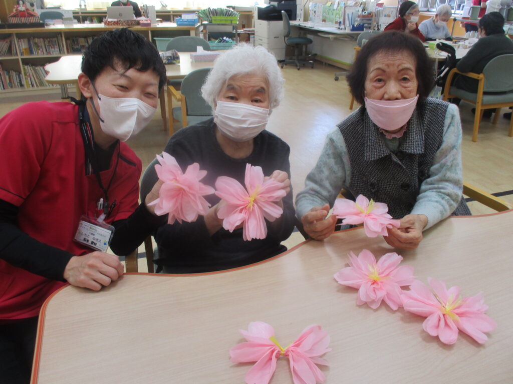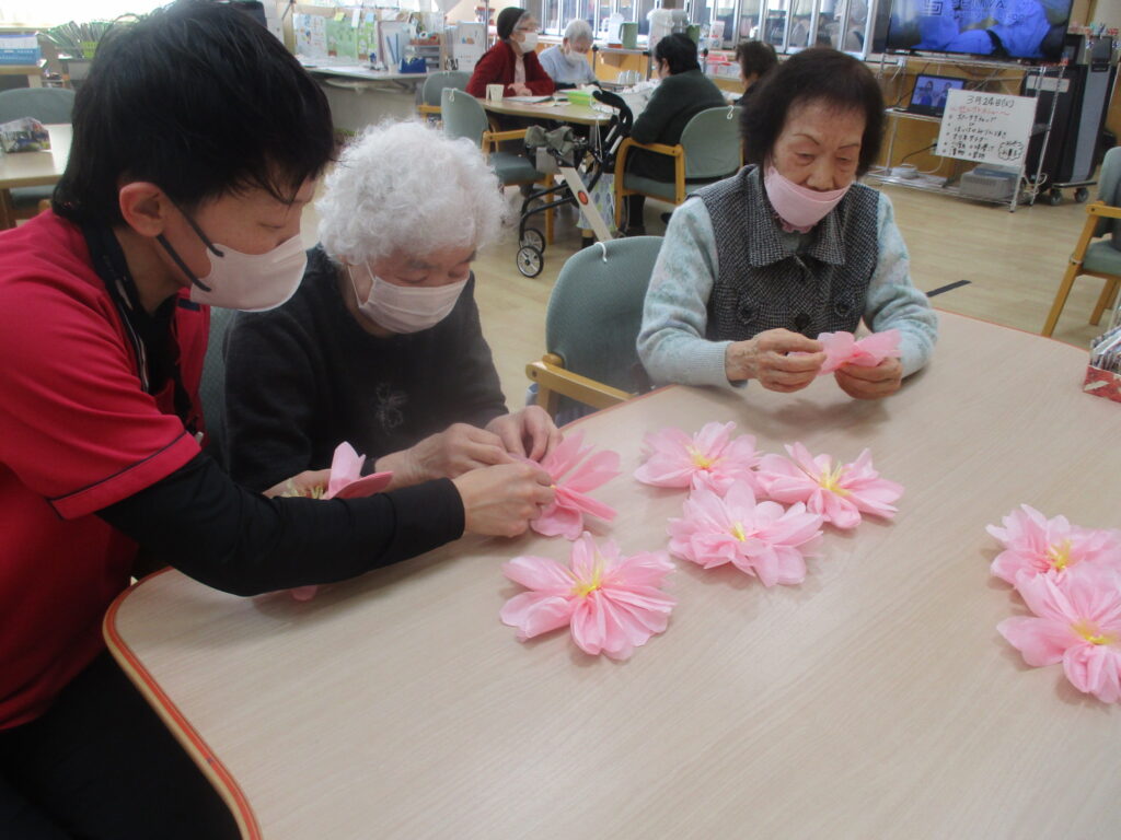 お花紙を使用し皆さんに桜の花を作っていただきました!