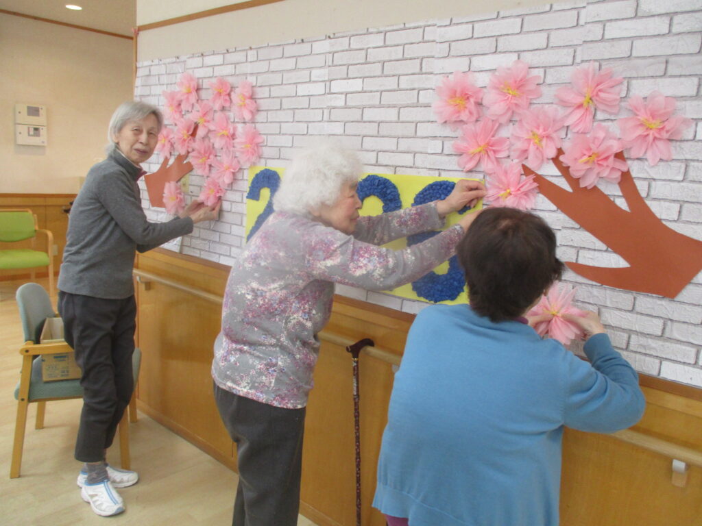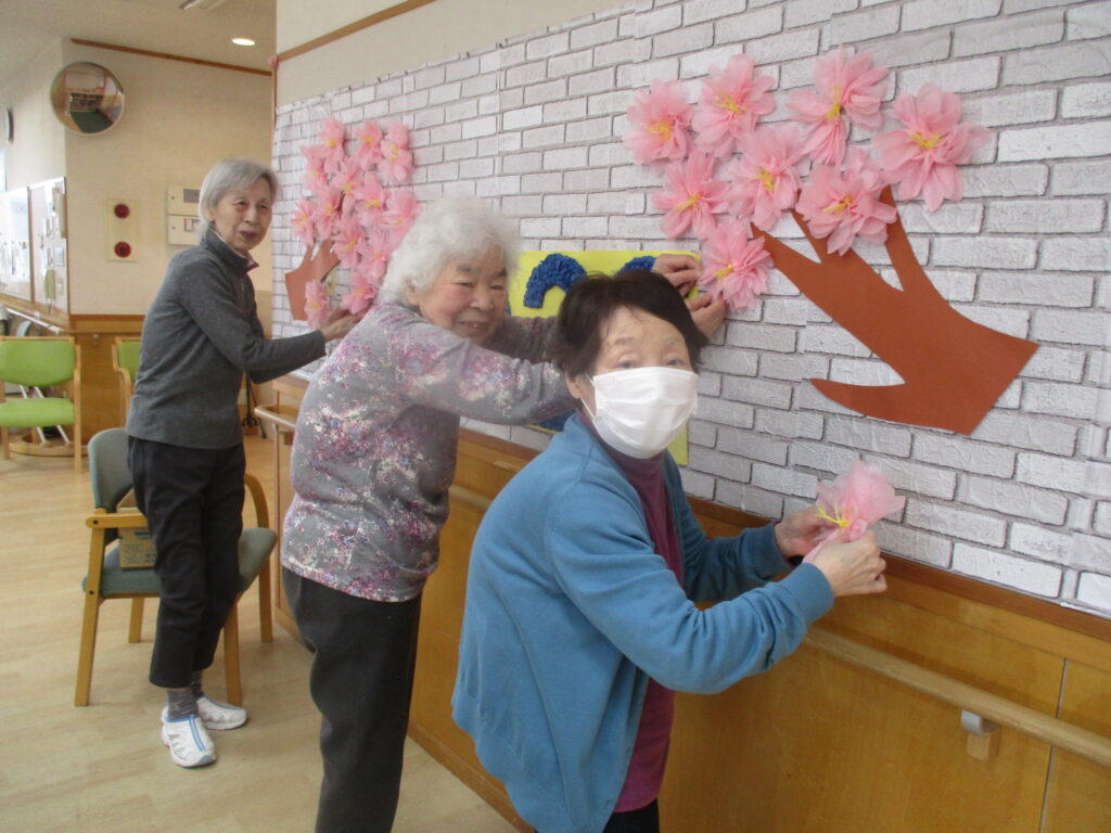 4月ということで施設内の装飾も梅から桜に変わりました~🌸