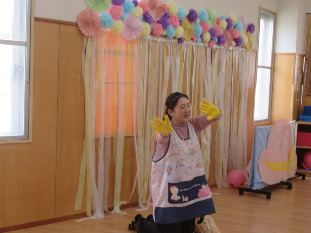 たんぽぽ組さんの手遊びも見ました。