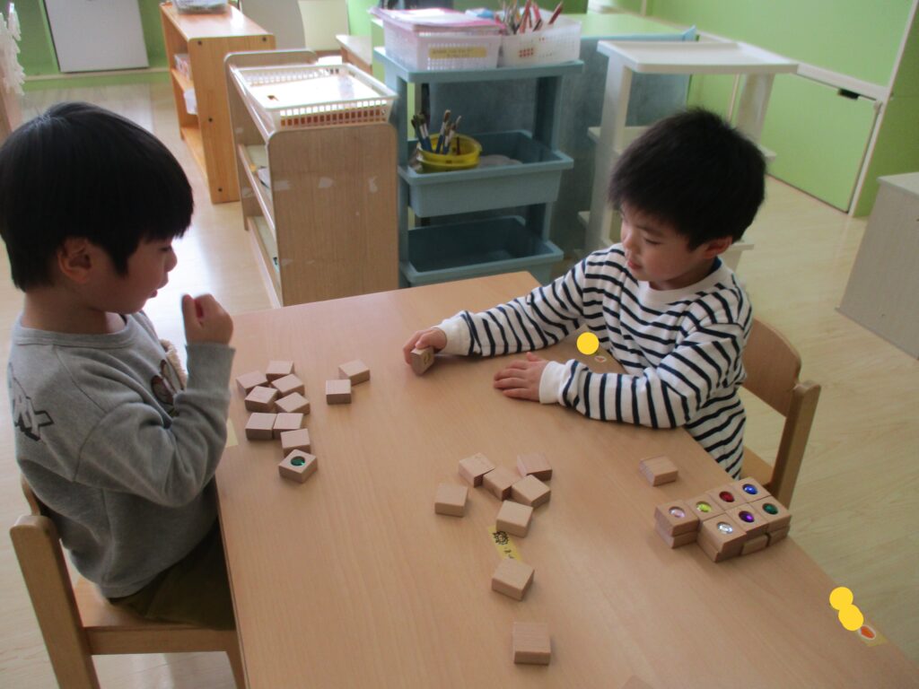 お部屋では好きな遊びを友達とやりとりをしながら楽しんでいます。