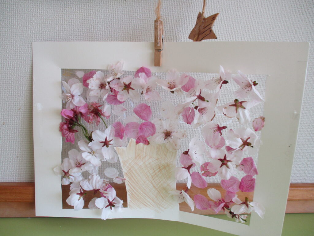 花びらアートはお部屋に飾りました。