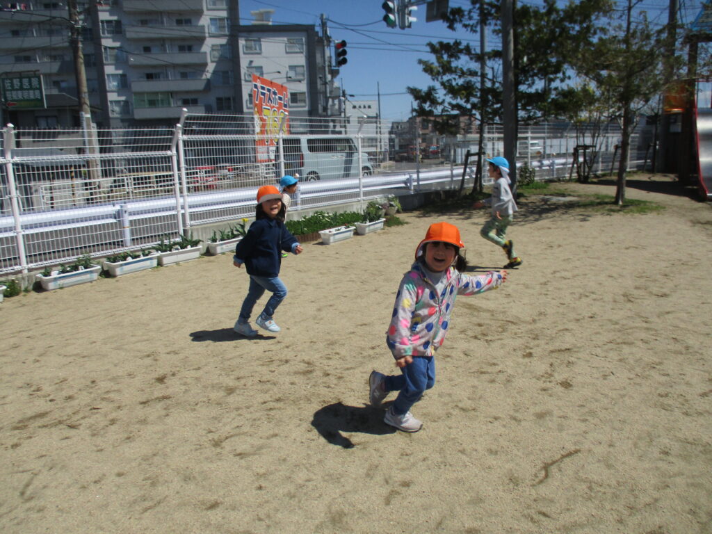 お花見から戻り、そのまま園庭で遊びました。