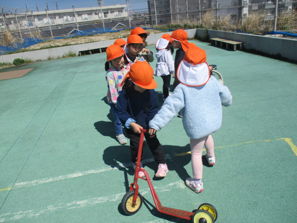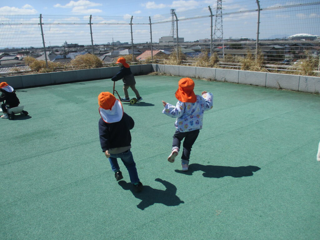 子ども達から「屋上で遊びたい!」の声があり、屋上で遊びました。