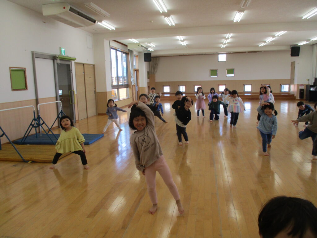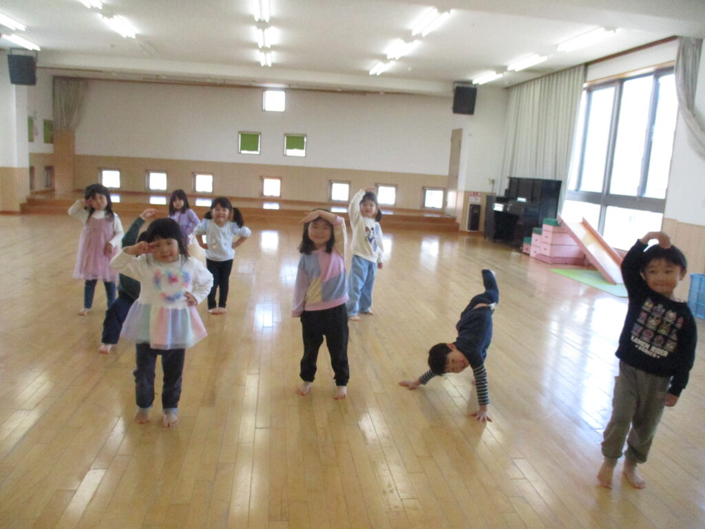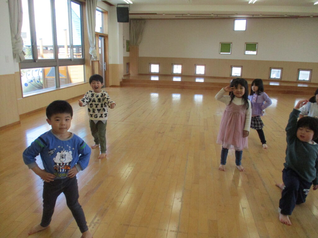 その後ホールでは『だるまさんがころんだ』をして楽しみました。