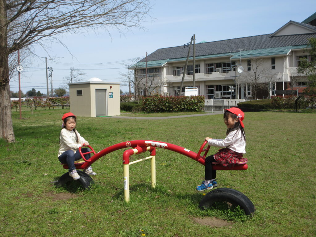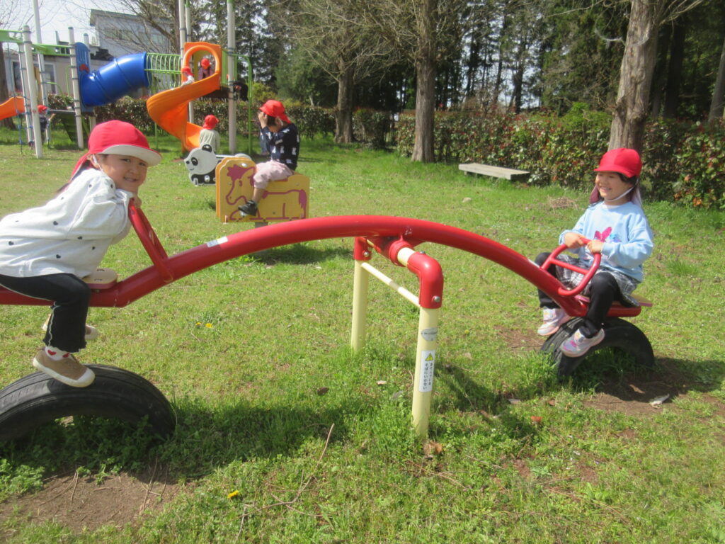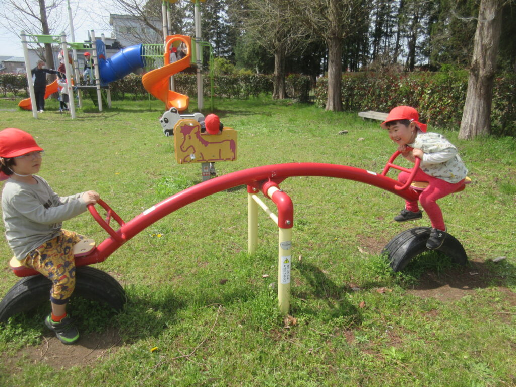 以外にも息を合わせてシーソーをするのは難しく、タイミングが合わなくて笑い合う姿も(^^)