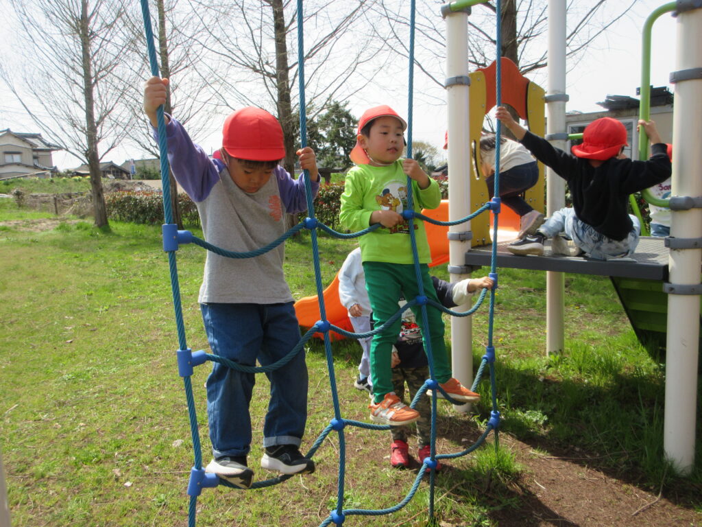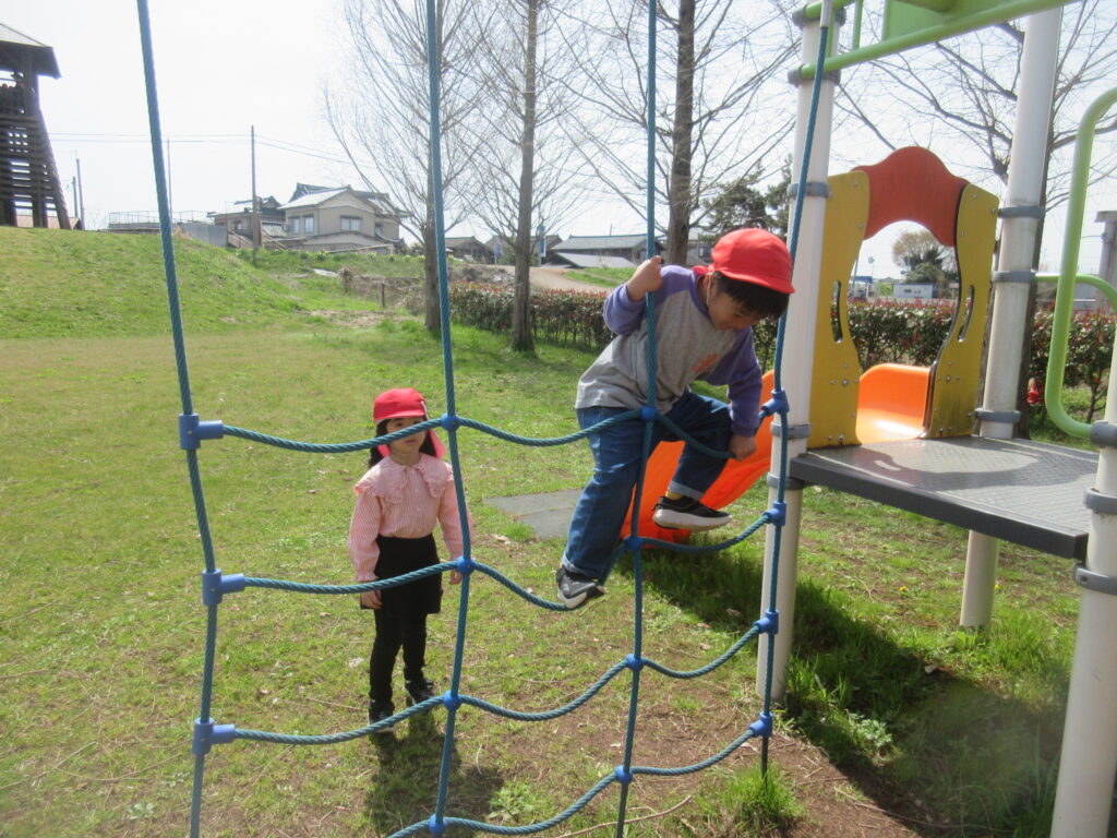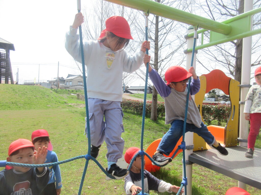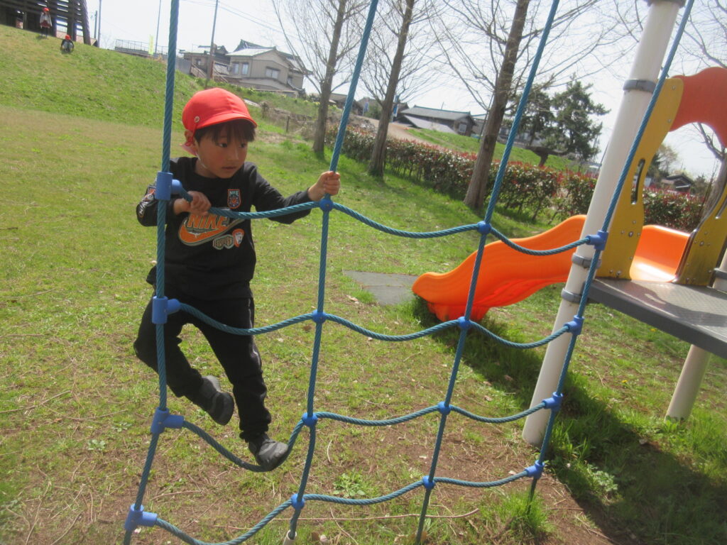 バランスをとることが上手なたいよう組さん、上手に登り、横に移動をしてすべり台に到達!!