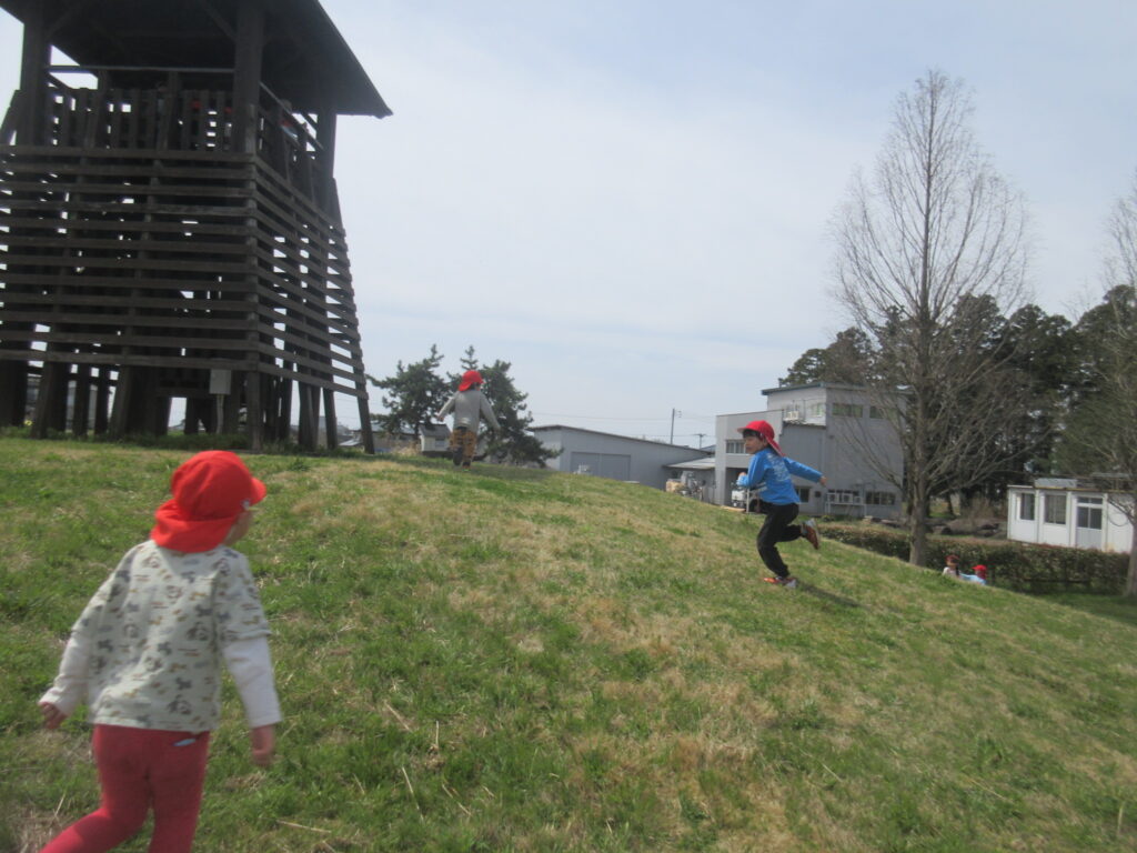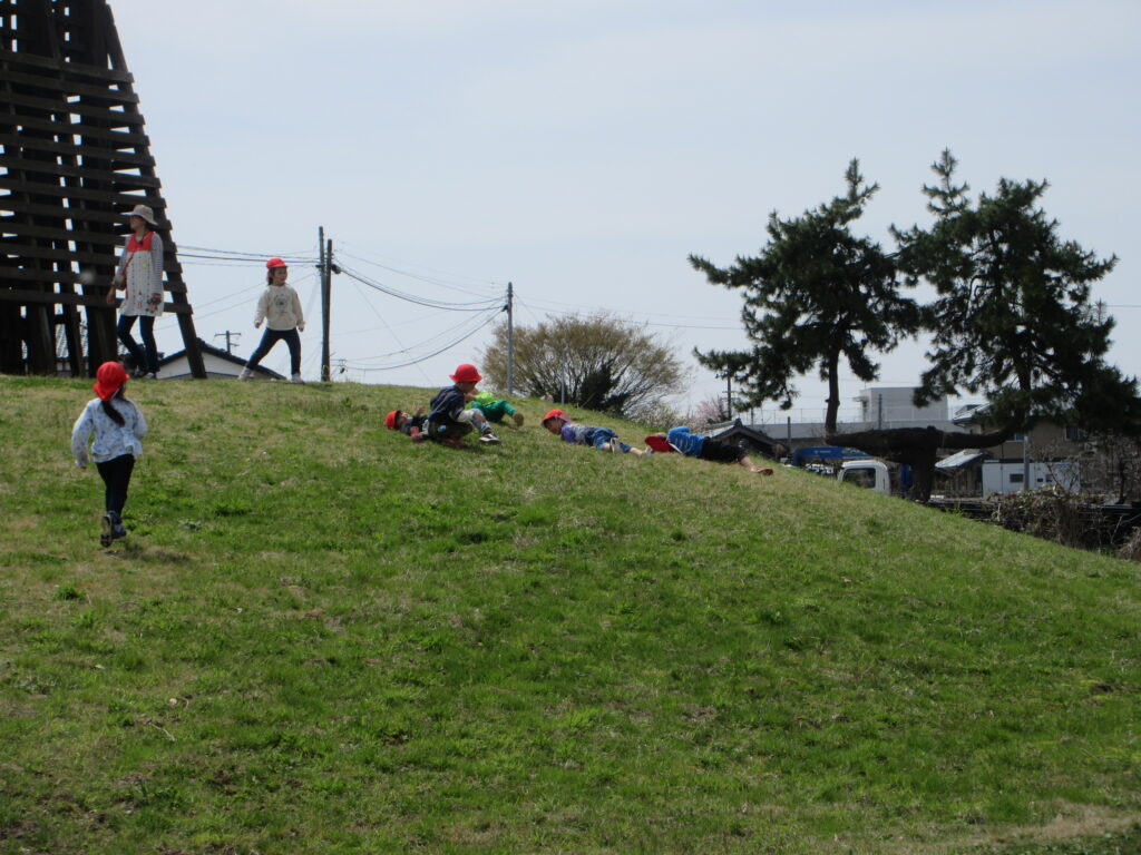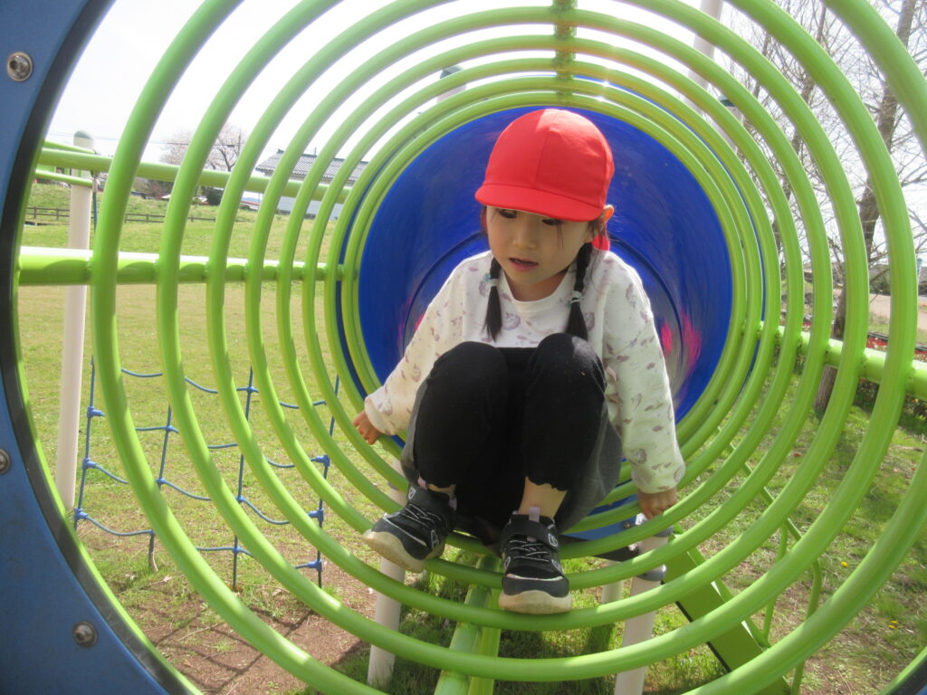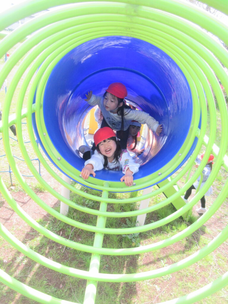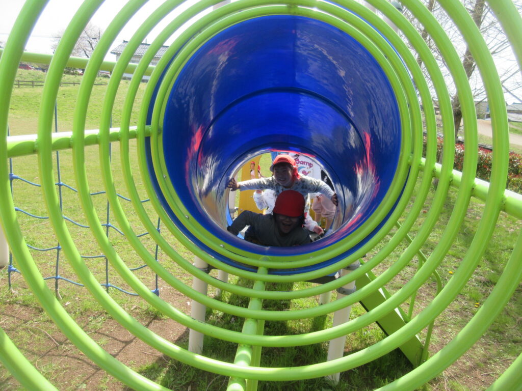 トンネルをくぐった先には、すべり台!みんな楽しそうに滑っていました!!