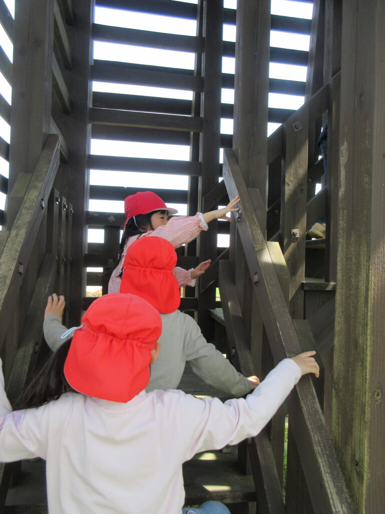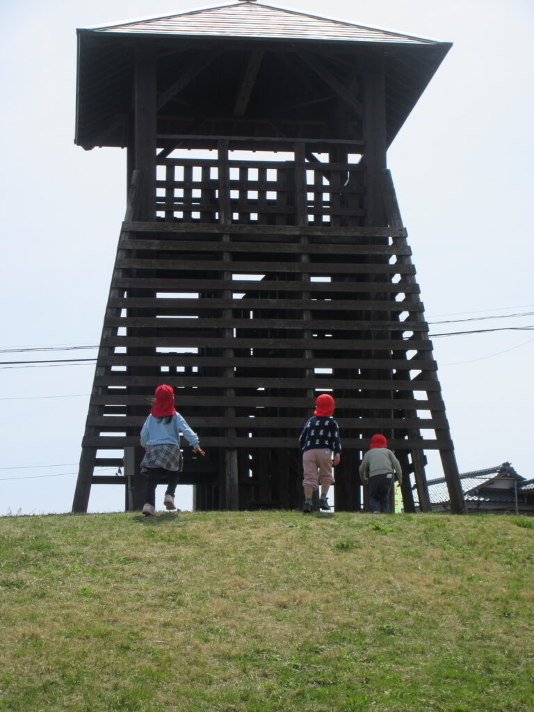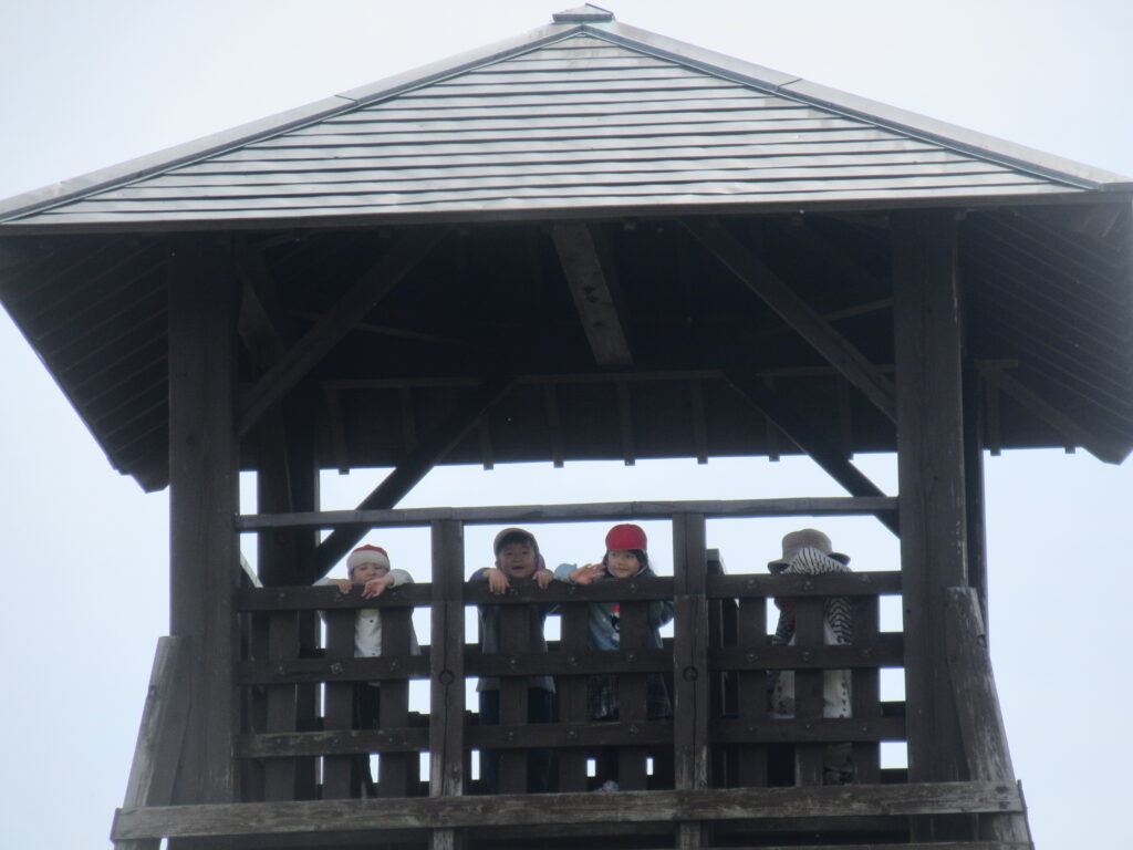 涼しい風が吹き抜けるやぐらの上から『ヤッホー』と下にいる友だちを呼んで楽しんでいました。