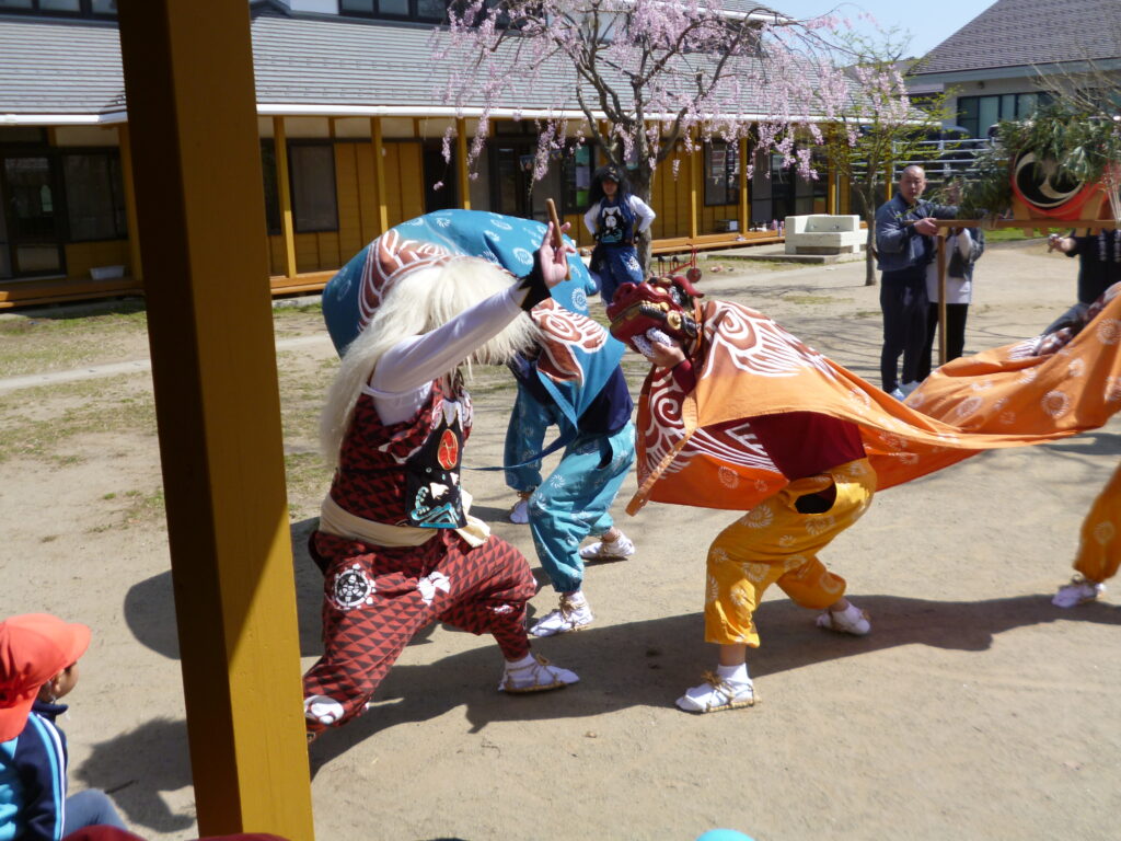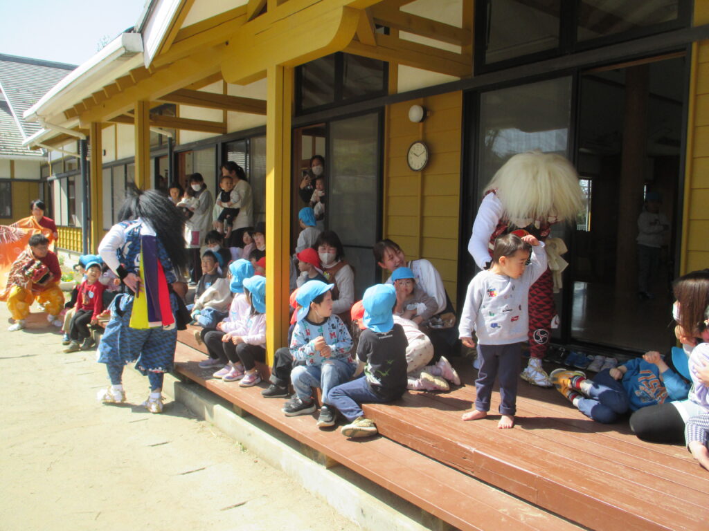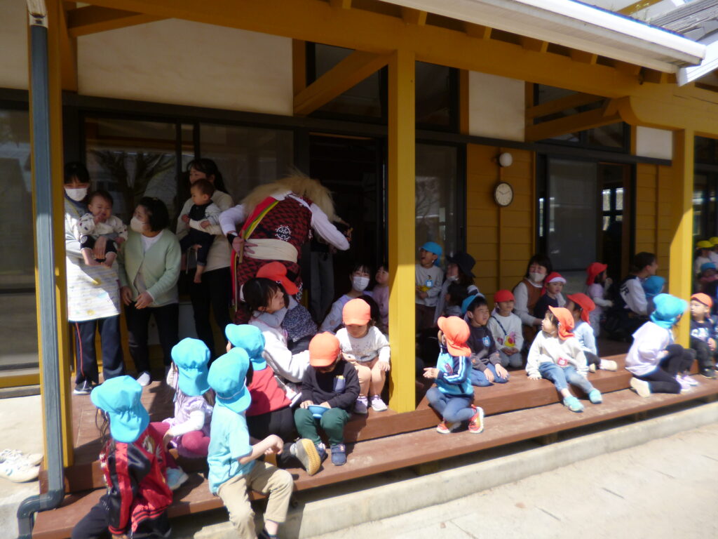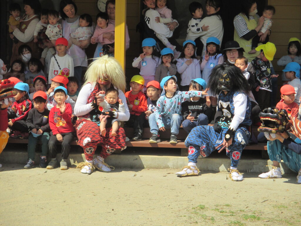 鬼も獅子も大サービスで何度も子どもたちの傍で舞ったり、頭を噛んだりしてくれました。