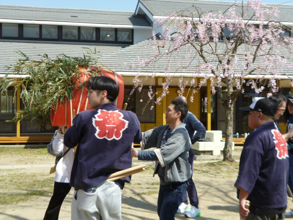 今日は、新穂中央青年会さんが来てくれました。太鼓の音が聞こえてくると、子どもたちはテラスに一目散。鬼の姿が見えると大歓迎でお迎えしました。