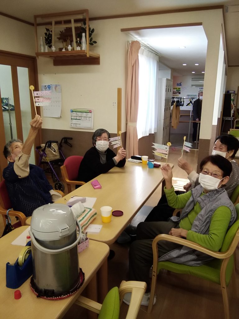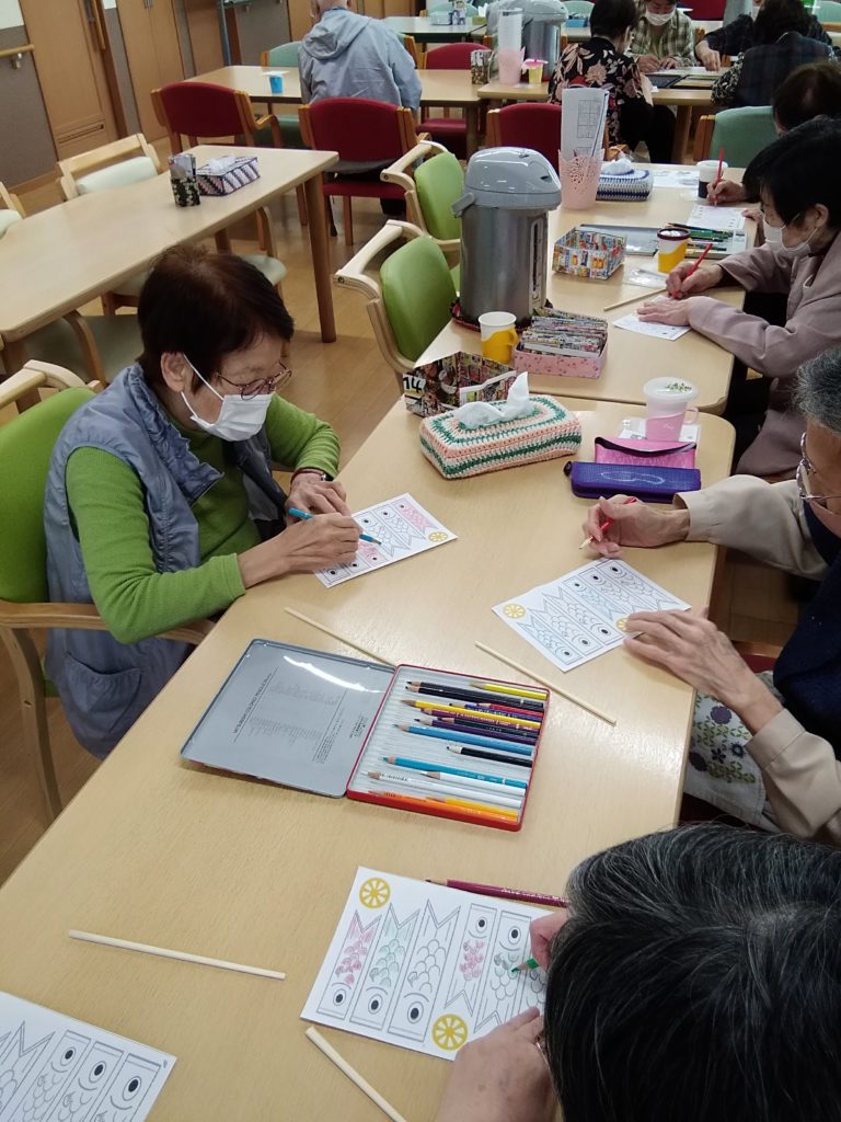 ニュース&トピックス リハトレ・ポート遊 【リハトレ・ポート遊】手作りこいのぼりイベント開催 掲載日2022.5.4 カテゴリー介護 お客様がそれぞれ色を塗りハサミを使いこいのぼりを作ってくれました~ 職員と一緒になって楽しんで作っております💛 皆様、夢中です。手作業は脳トレにもなりますね^^ 出来上がり~💓 皆さん、見て下さ~い💛 今日はお風呂場にもこいのぼりが泳いでます🐠