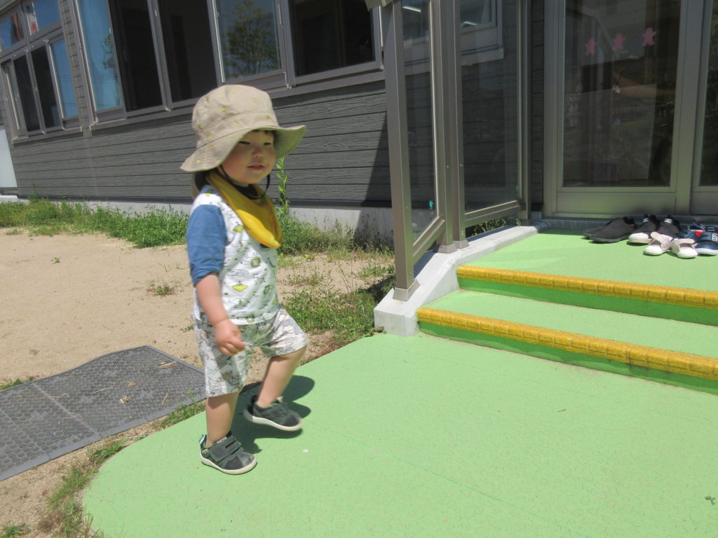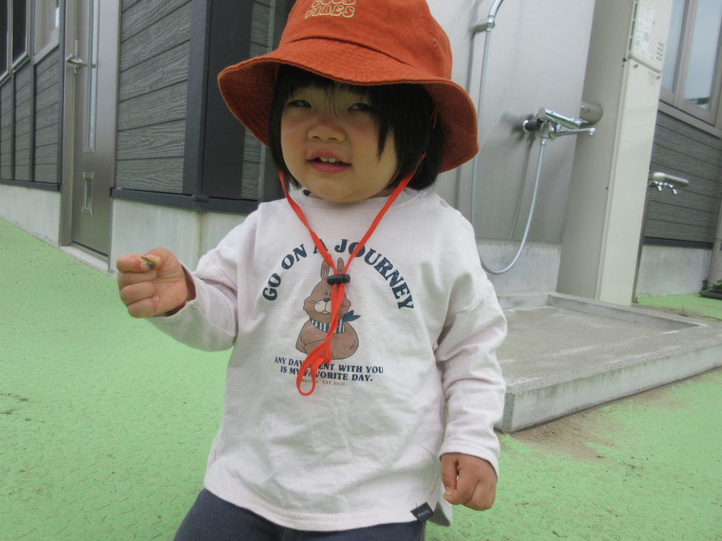 「お外行こう~!」と声をかけると、嬉しそうに帽子を被ろうとしたり、靴を履いてみようとしたりするくらい、園庭遊びが大好きなめばえぐみ&つぼみぐみです😊