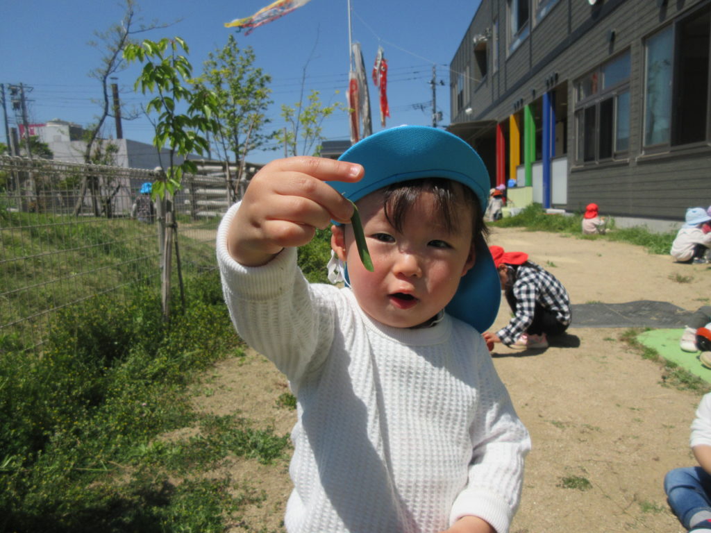 見てみて~!「まめ(カラスノエンドウ)!」と嬉しそうでした🌱