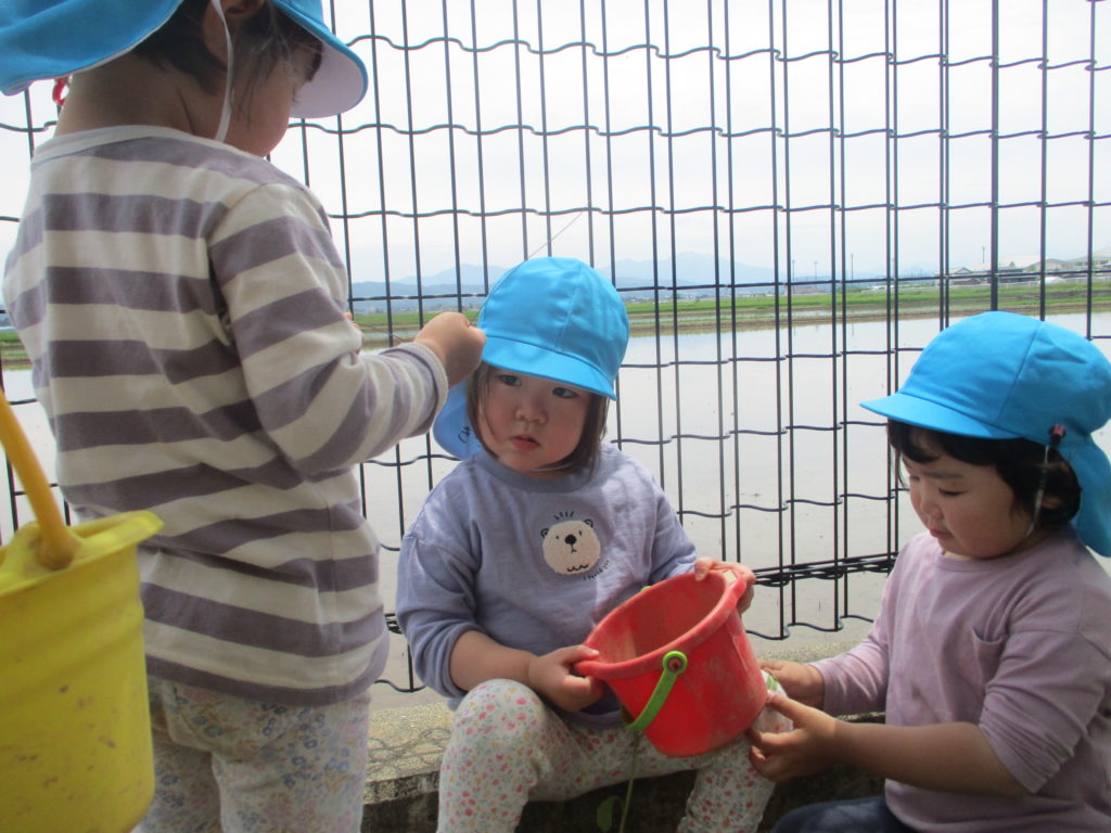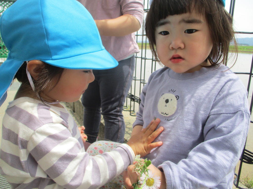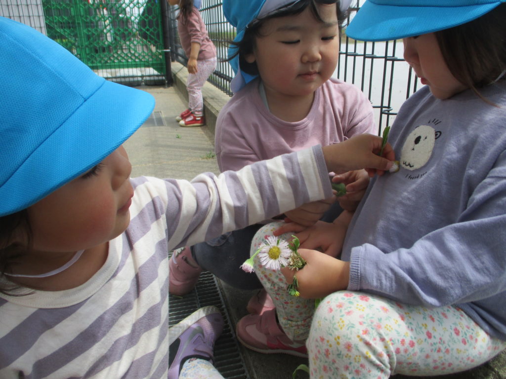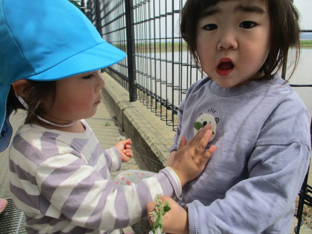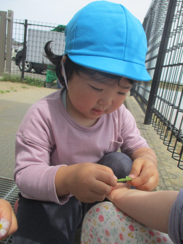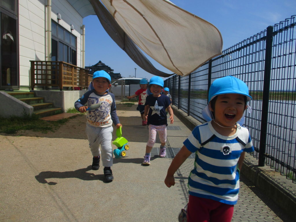 天候が良い日が続いていますね。わかば組のお友だちは外が大好き!今日も園庭に出てたくさん遊びました。