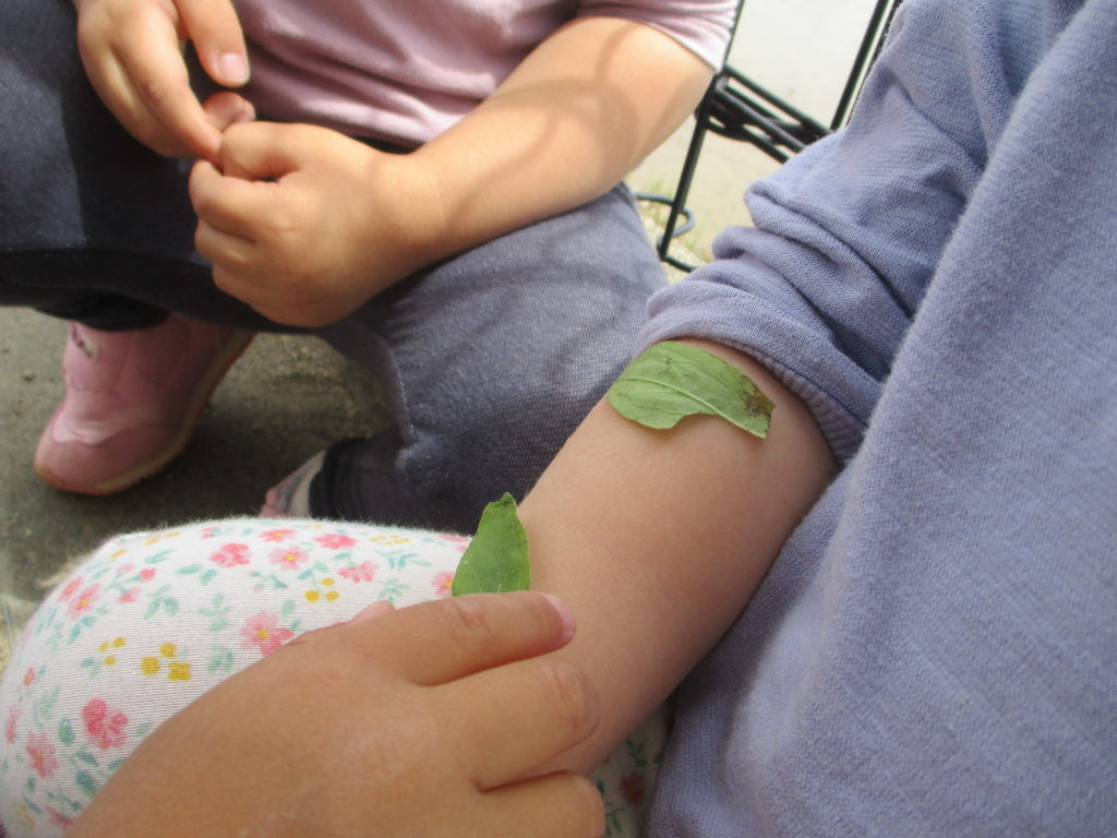ごっこ遊び中で「お大事になさってください」や「絆創膏お持ち帰りください」などと実際に使われている言葉を使っていてびっくりしました。木の枝や葉っぱを自分で考えて物に見立てて遊んでいて成長を感じました★具合が悪くなったらわかば医院まで!お待ちしておりまーす。