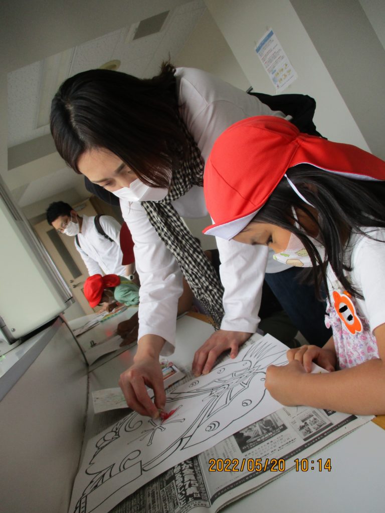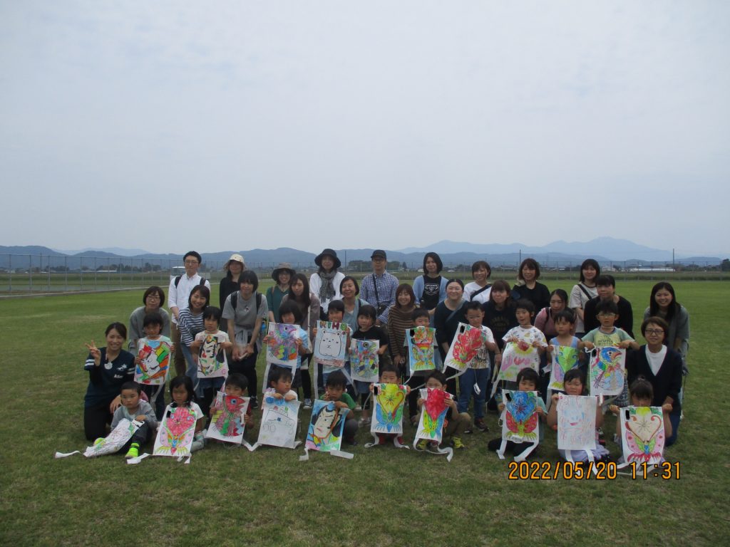 続いては、凧の組み立て♪お家の方々に頑張っていただき、立派な凧が完成しました✨