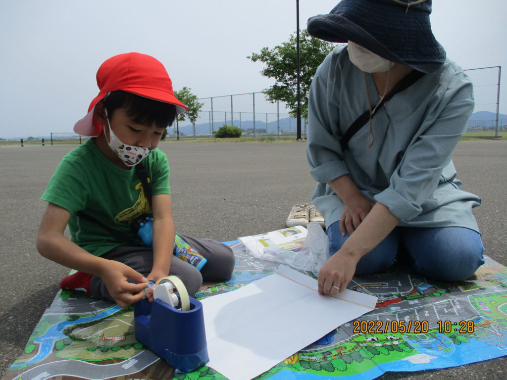 今日は、5歳児保育参加がありました♪天気も良く、凧作り日和となりました😊