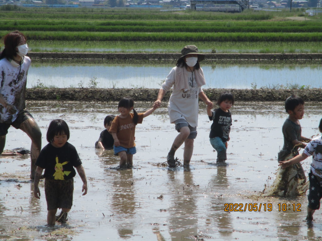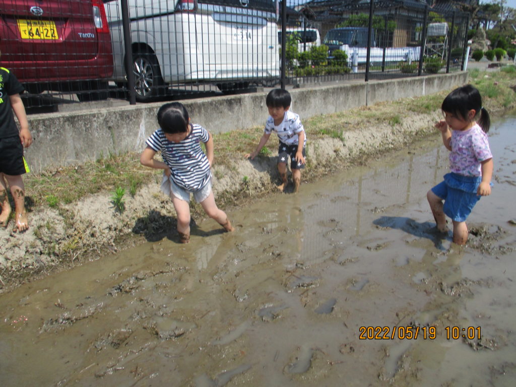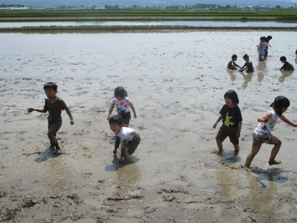 最後は、よーいどん!!っと泥んこかけっこをして、泥のしぶきがたくさん飛ぶ中で大はしゃぎの子どもたちでいた。