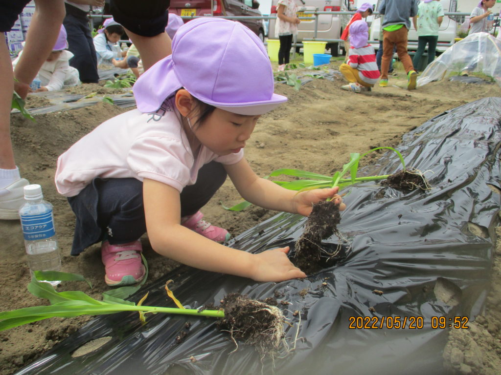さつまいもの苗を植える時の様子では、隣の友だちのやっている姿をよーーく見て自分でやり方が分かっていても慎重に植える子もいました。
