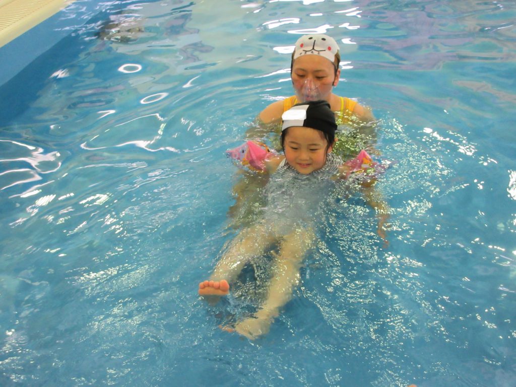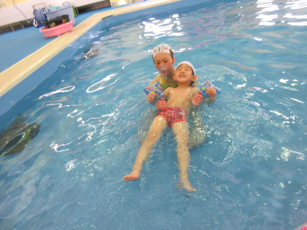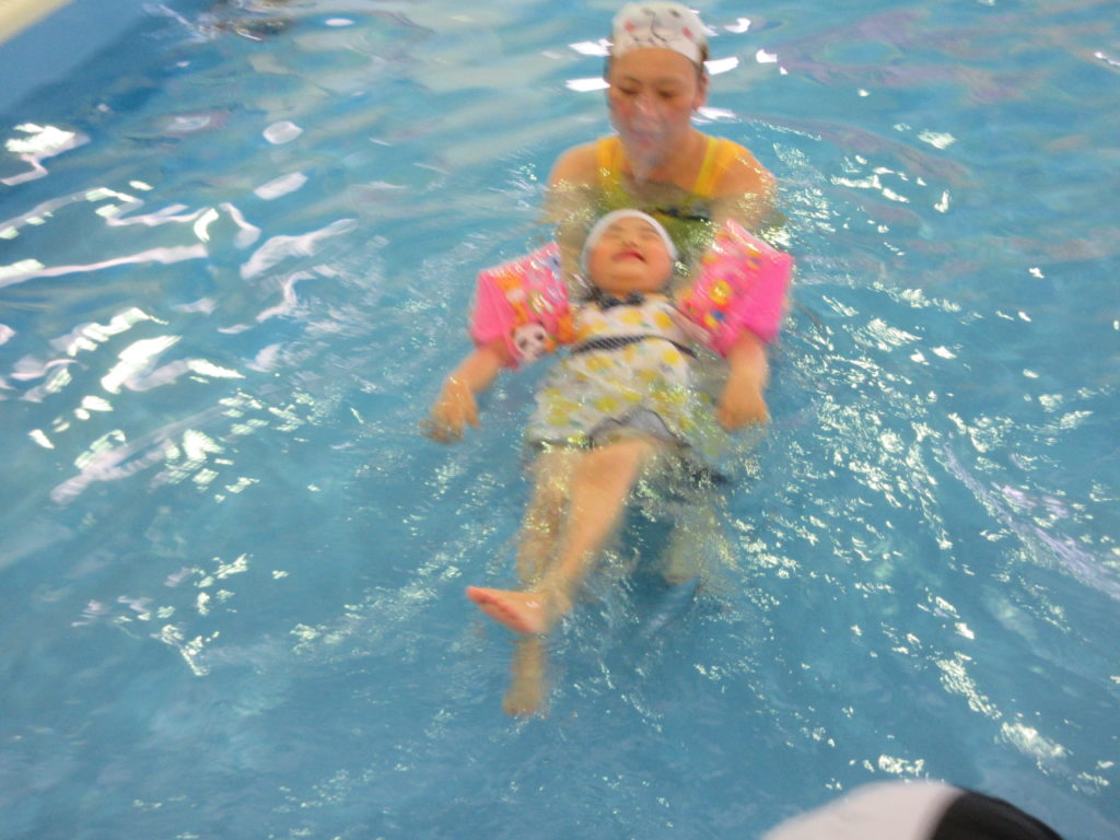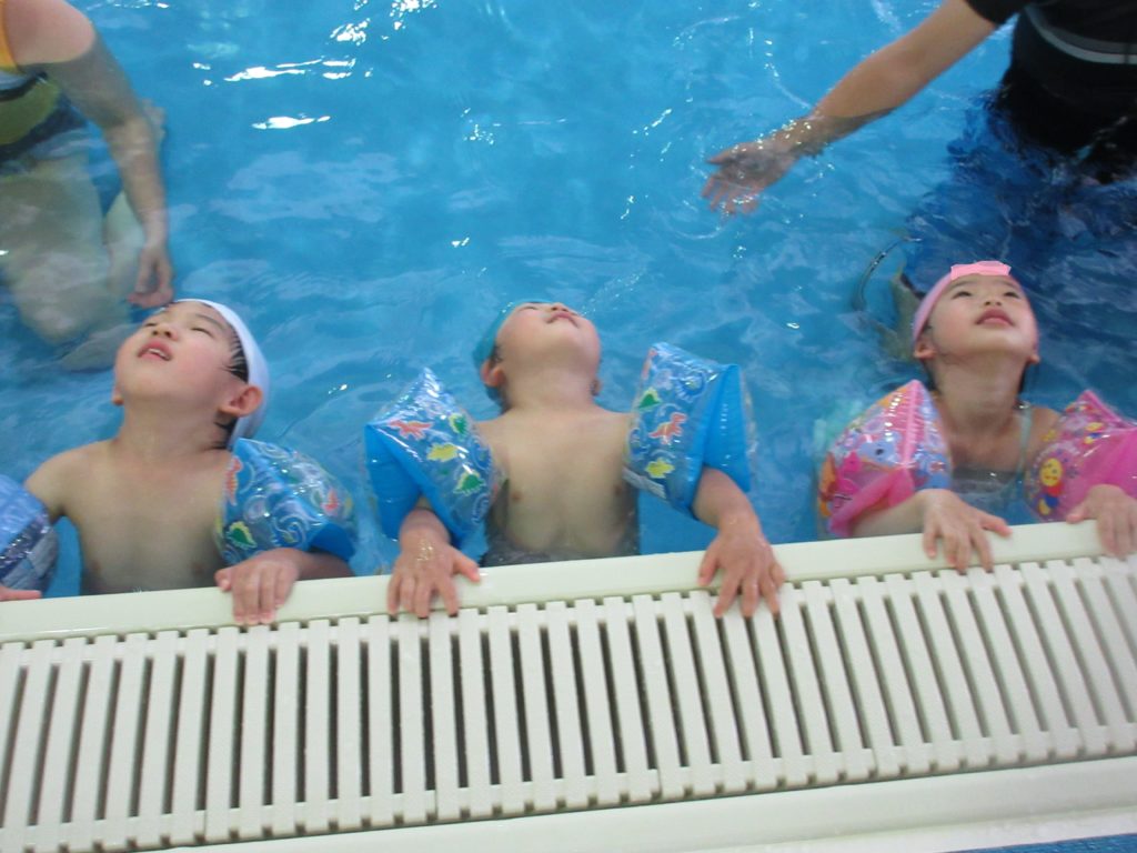 腕に浮き袋をつけて後頭部を水につける練習をした後は・・・