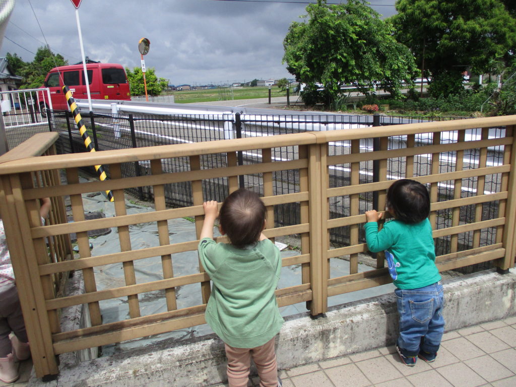 玄関前のスロープでは久しぶりにカートに乗ることができてとても嬉しそうでした。道路の方では郵便車や園のライオンバスを近くでみることができましたよ!今度はどんなはたらく車に出会えるか楽しみだね😆