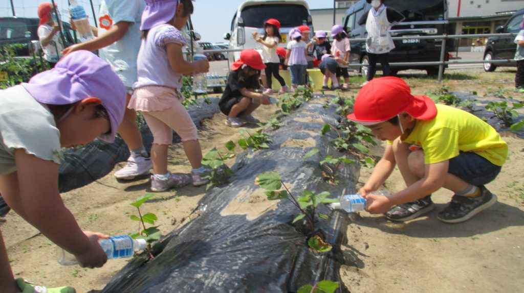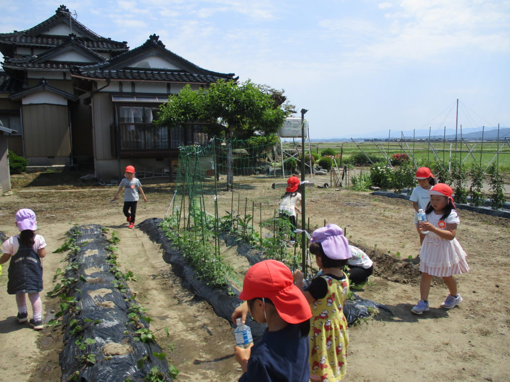 そら組のお友だちと一緒に水やりをしてお世話をしています✨子どもたちの成長と共に野菜も大きく生長していますね😊