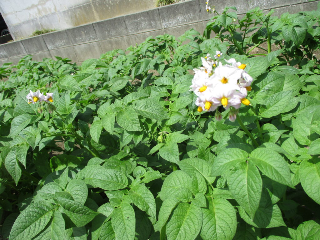ナスやジャガイモなどの野菜も花が咲き、大きく育っていました😊