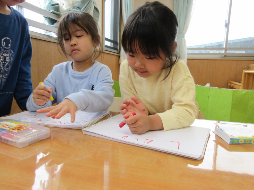 こちらはお勉強ごっこをしているようです。