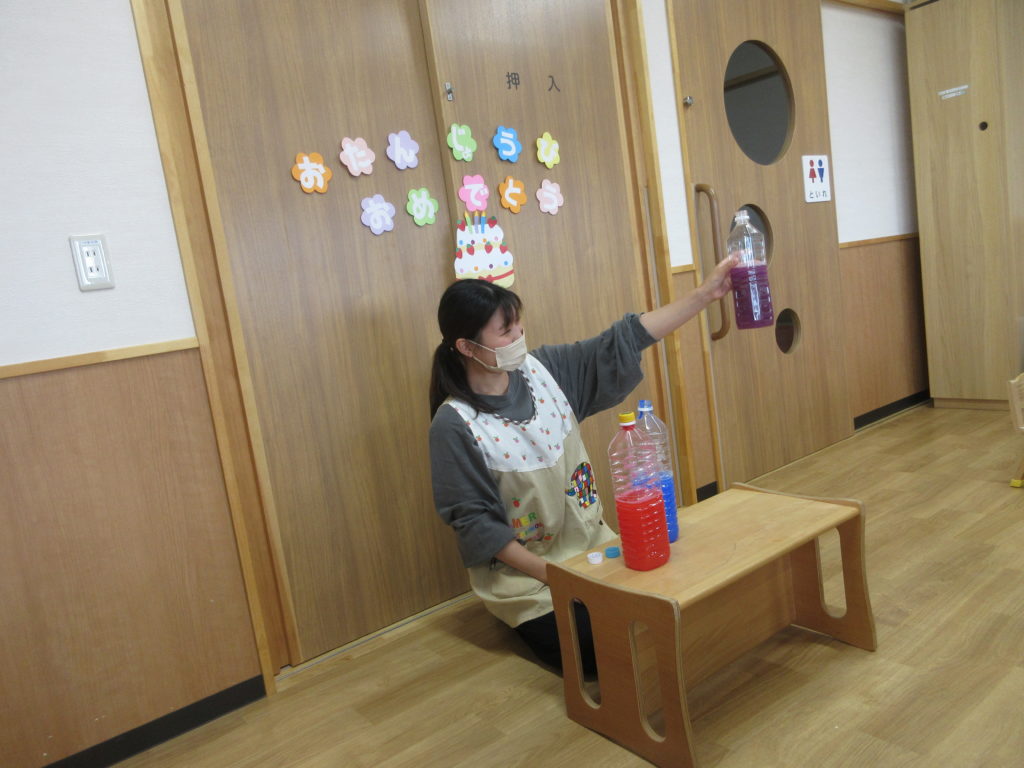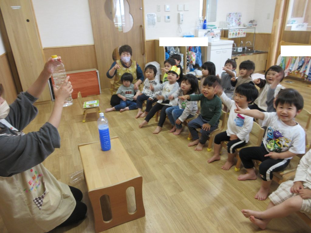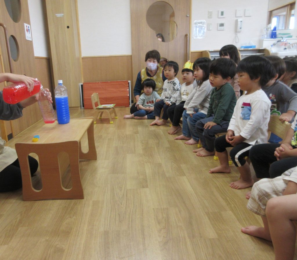 透明な水が、みんなの「ちちんぷいぷいのぷい~!」の掛け声で色が変わりました!!
