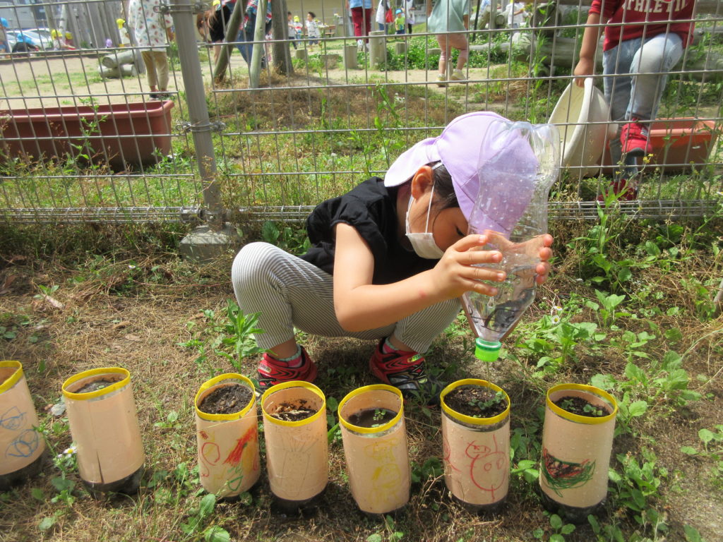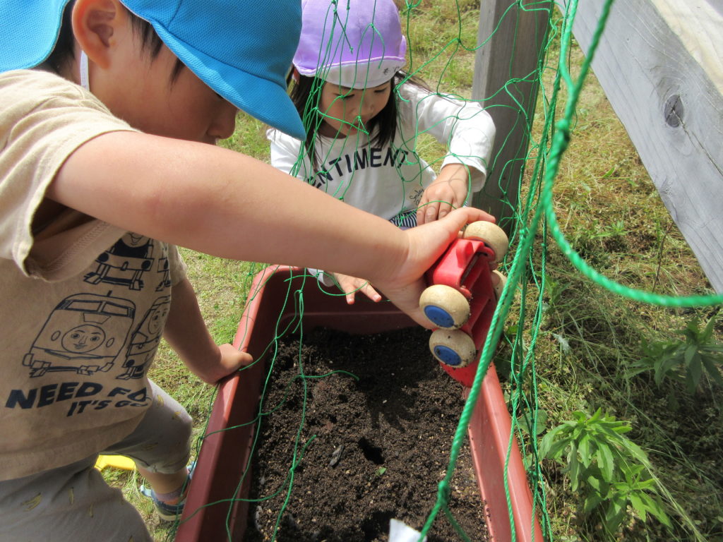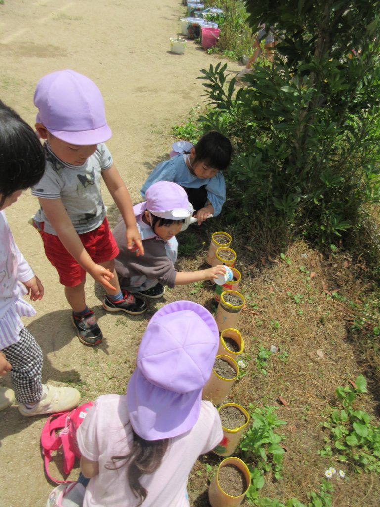 今日は園庭の緑のカーテンになるアサガオの種植えもしました。