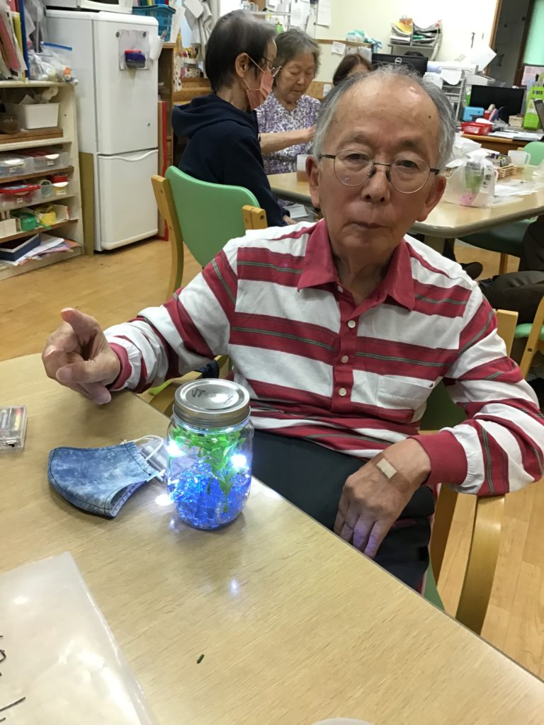 ニュース&トピックス 嵐の中の灯り【勇樹会日の出デイサービス】 掲載日2022.6.29 カテゴリー介護 27日は朝から雷雨がひどく暗い一日でしたが綺麗で明るい飾りを作りました。 好きな色の石をを選んでライトを入れたら完成です( *´艸`)